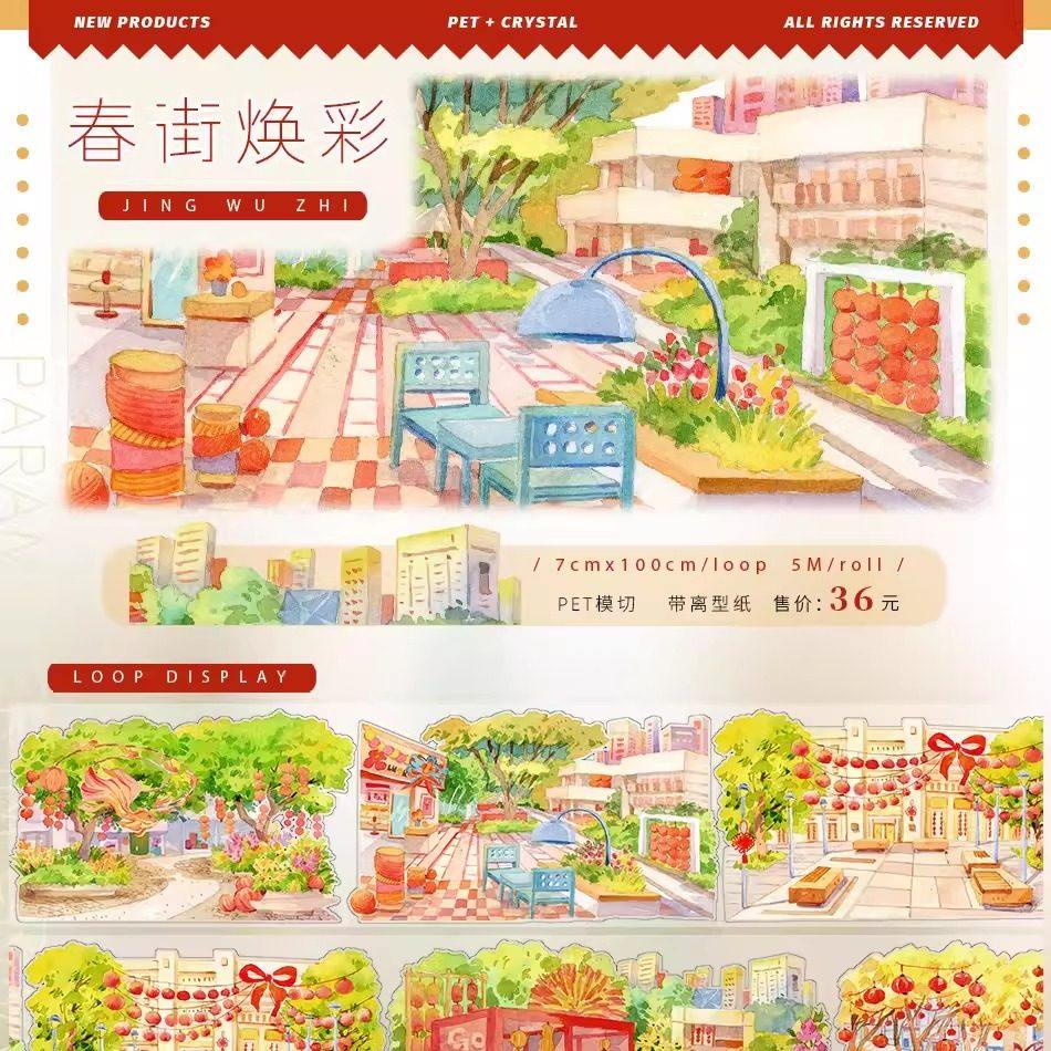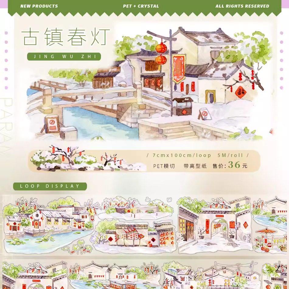 景物志#1月新品春冬日灯雪城镇乡居列轨现风街道造景胶带手账拼贴