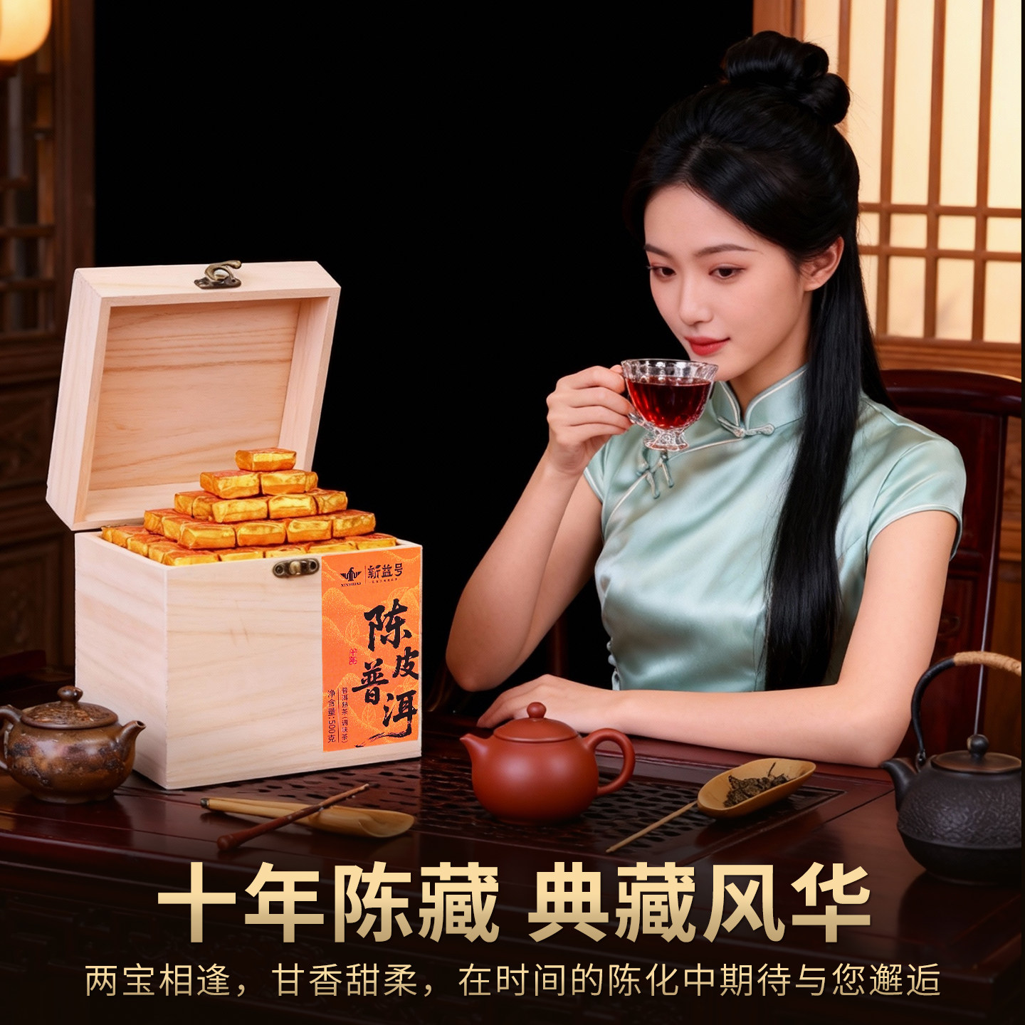 陈皮普洱茶熟茶老班章冰岛云南柑普金砖糯香茶叶喝糯米香熟普洱