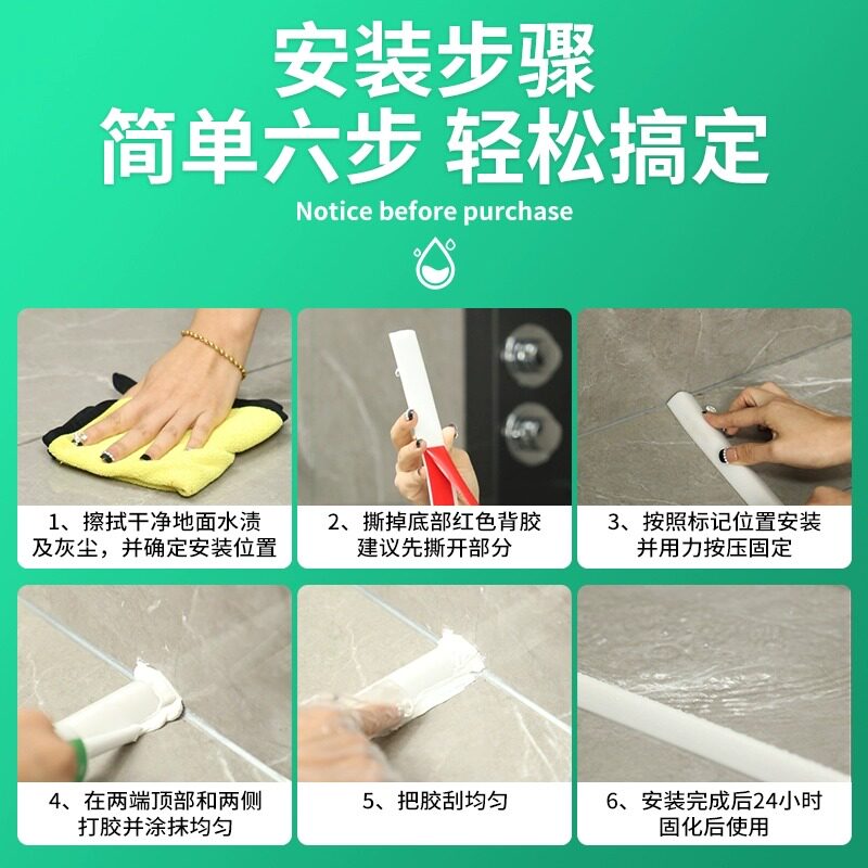 卫生间防水条浴室门坎挡水条厨房台面软硅胶自粘隔水条门槛固定