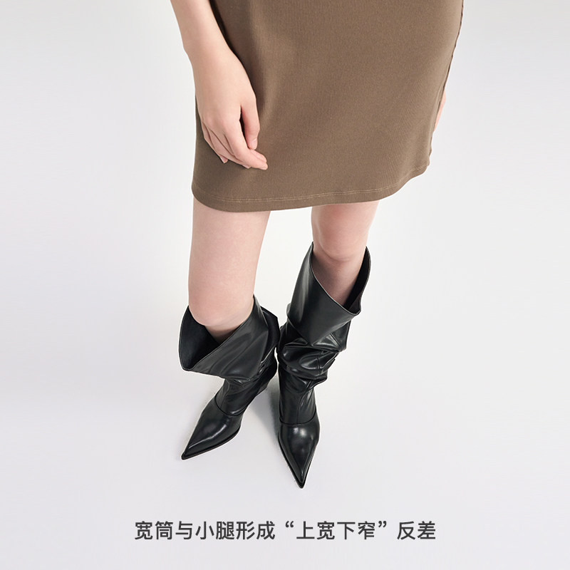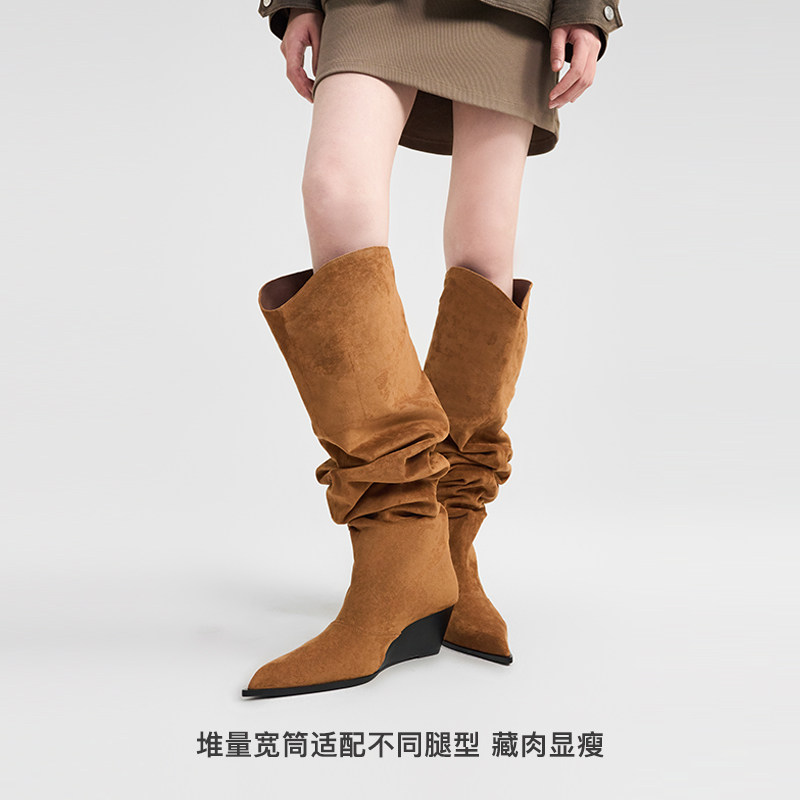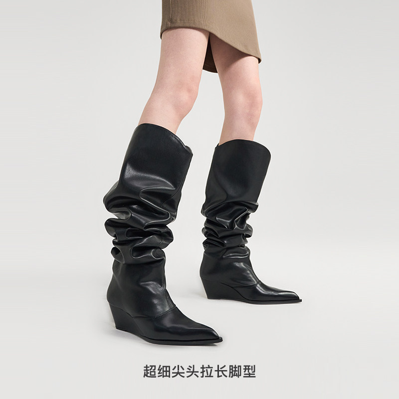 修长尖头宽松堆堆靴 个性坡跟增高且舒适