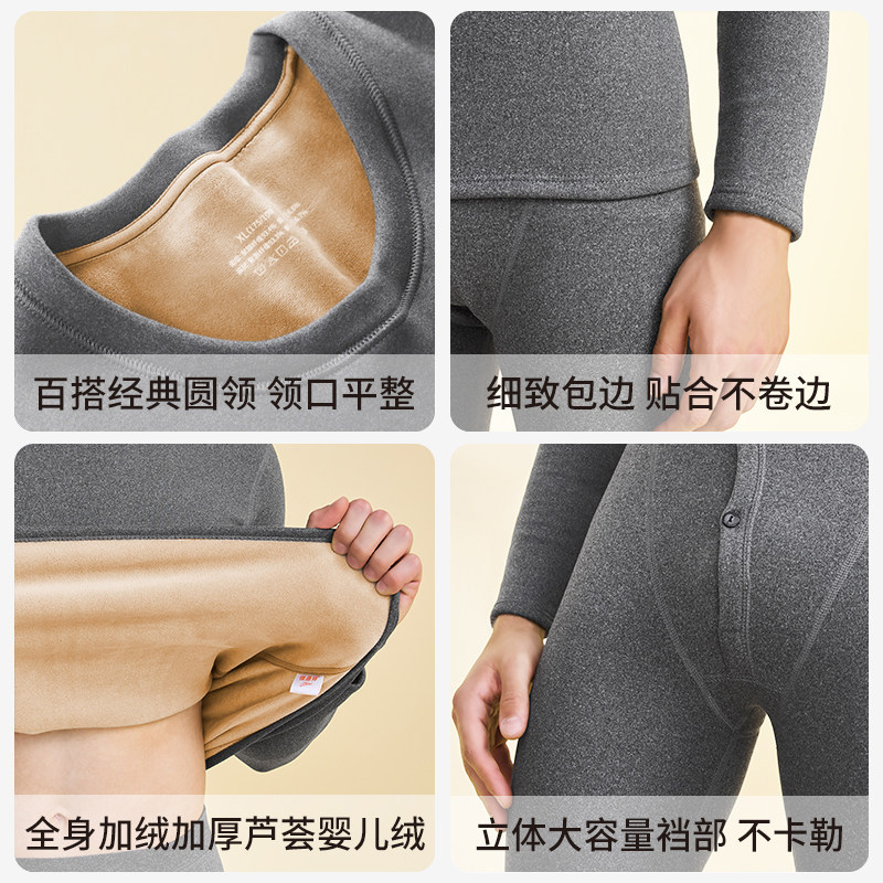 兰帕媛无痕保暖内衣套装双面磨毛绒羊毛蚕丝紧身男女士大人冬季6