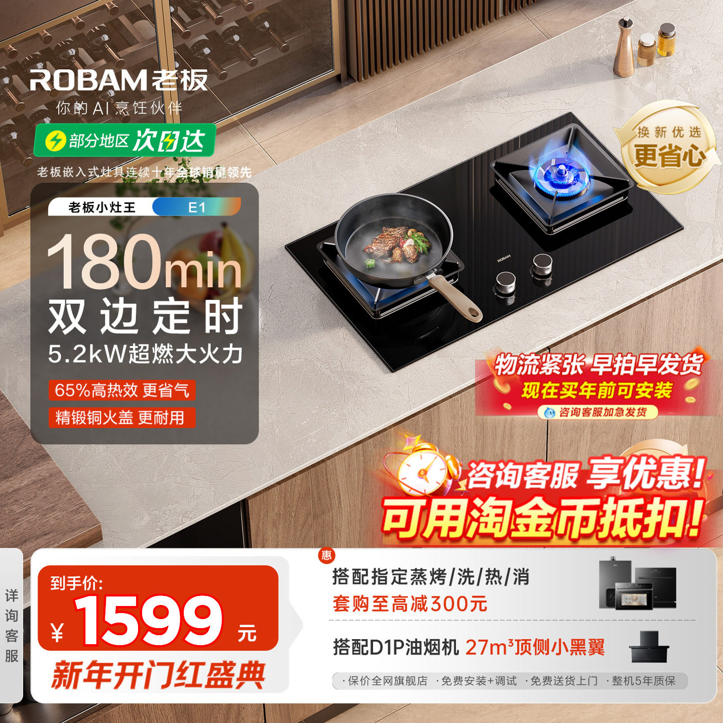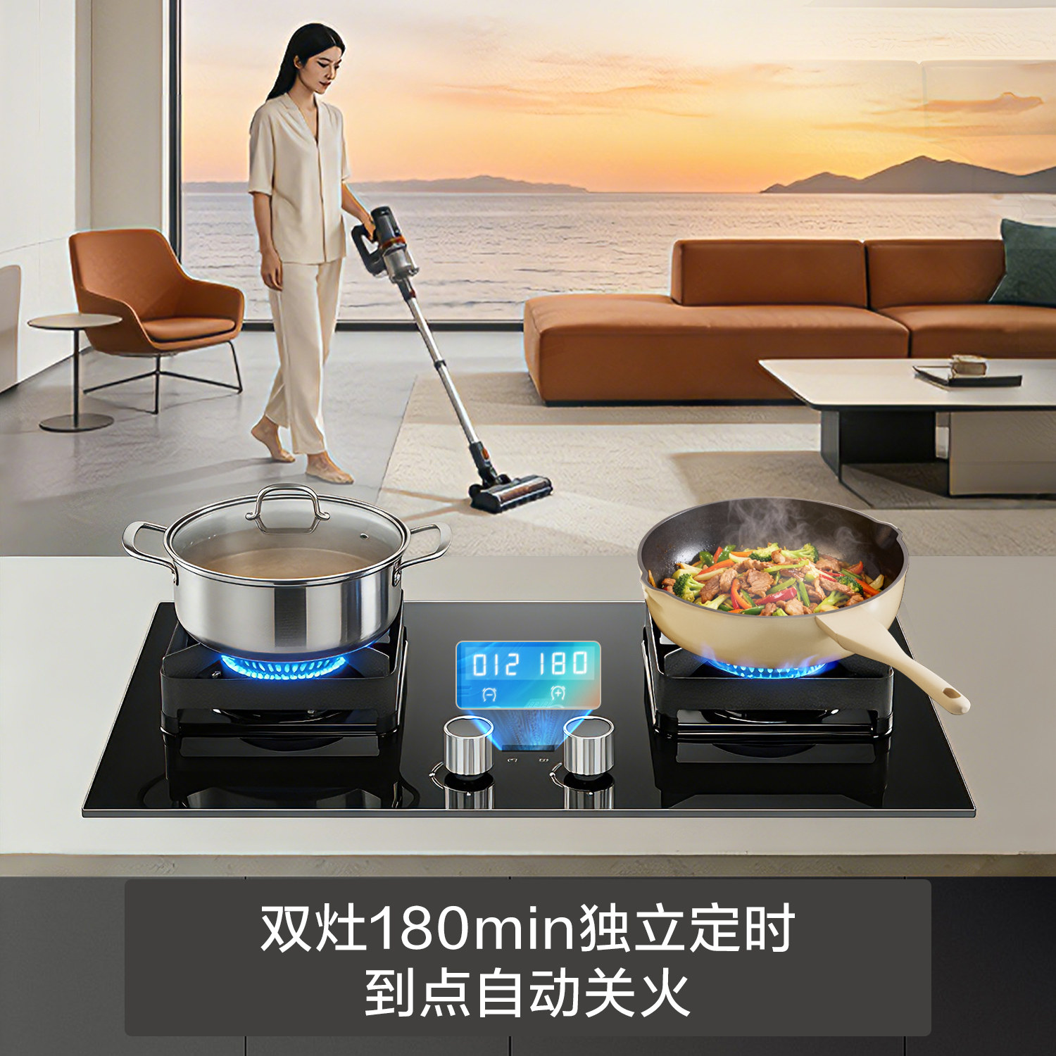 【小灶王】老板定时家用猛火燃气灶双灶23BX-E1天然气灶官方正品