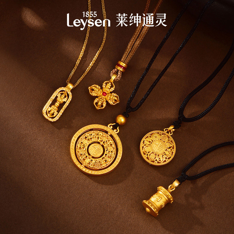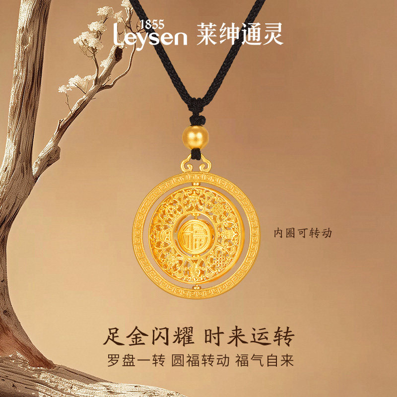 【计价金】莱绅通灵梵光系列 八宝罗盘足金黄金吊坠 多退少补