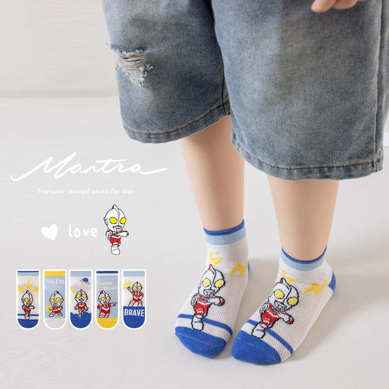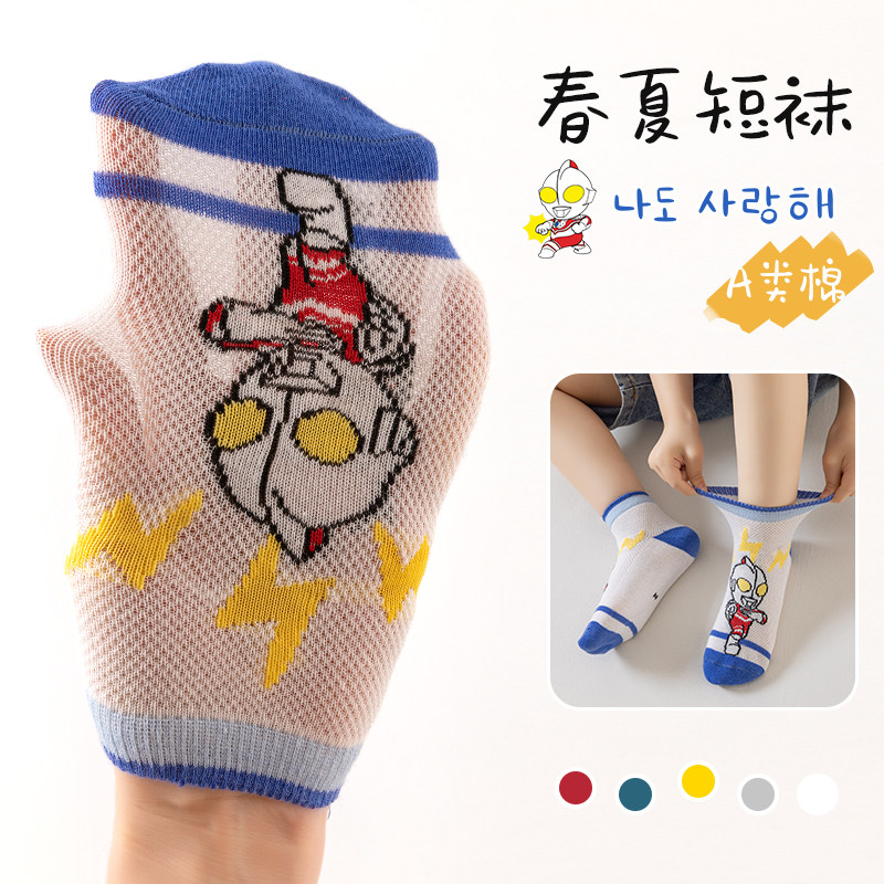儿童袜子春夏薄款男童宝宝可爱卡通奥特超人中筒袜中大童男孩棉袜