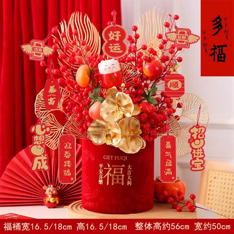 年宵花福桶过年花束新年摆件春节氛围布置装饰品发财果客厅插花