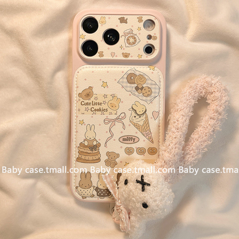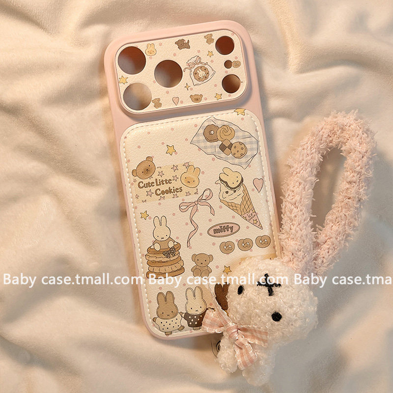 北比少女粉色波点甜品米菲兔适用苹果17手机壳iphone16promax新款15带挂绳17pro可爱17pm皮质16日韩15pro全包