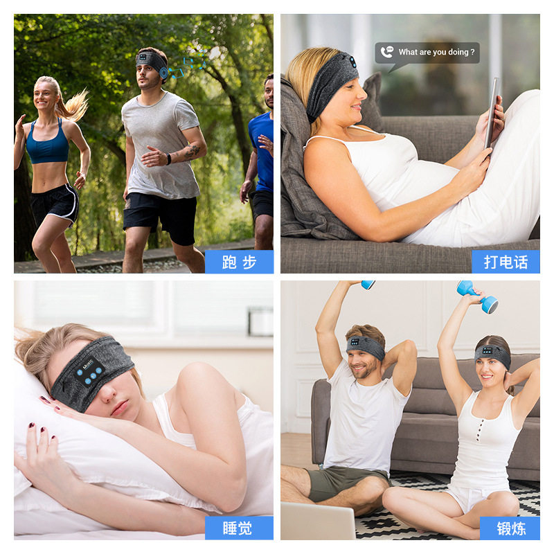蓝牙音乐眼罩睡眠遮光听歌蓝牙运动头带不入耳机户外跑步瑜珈头巾