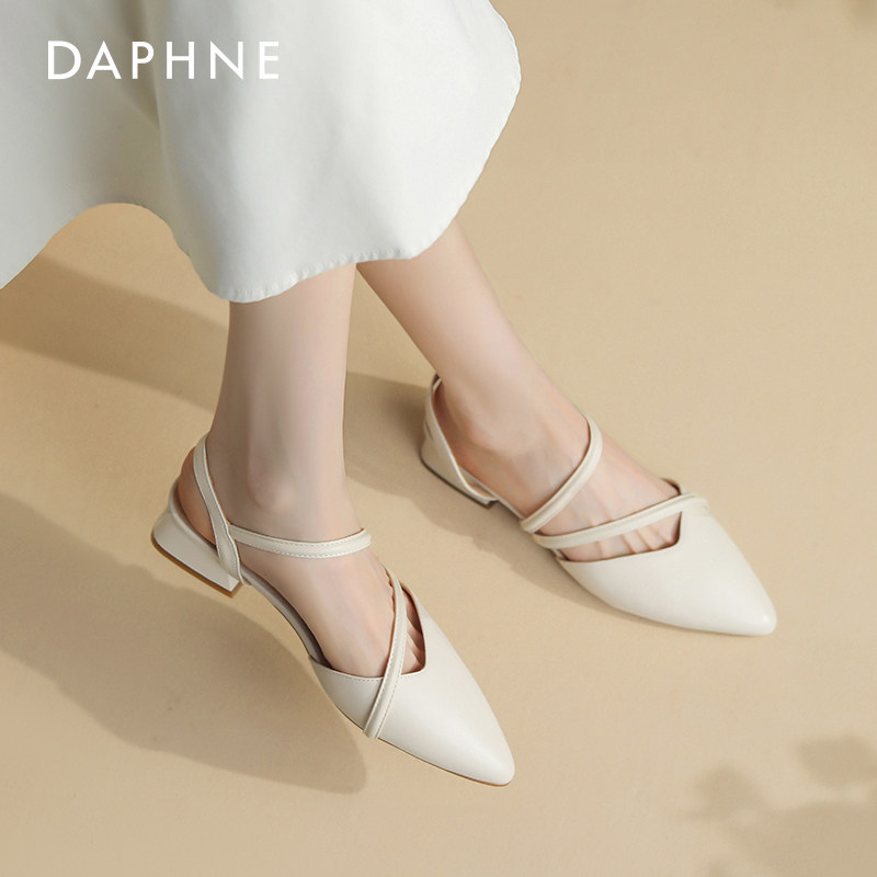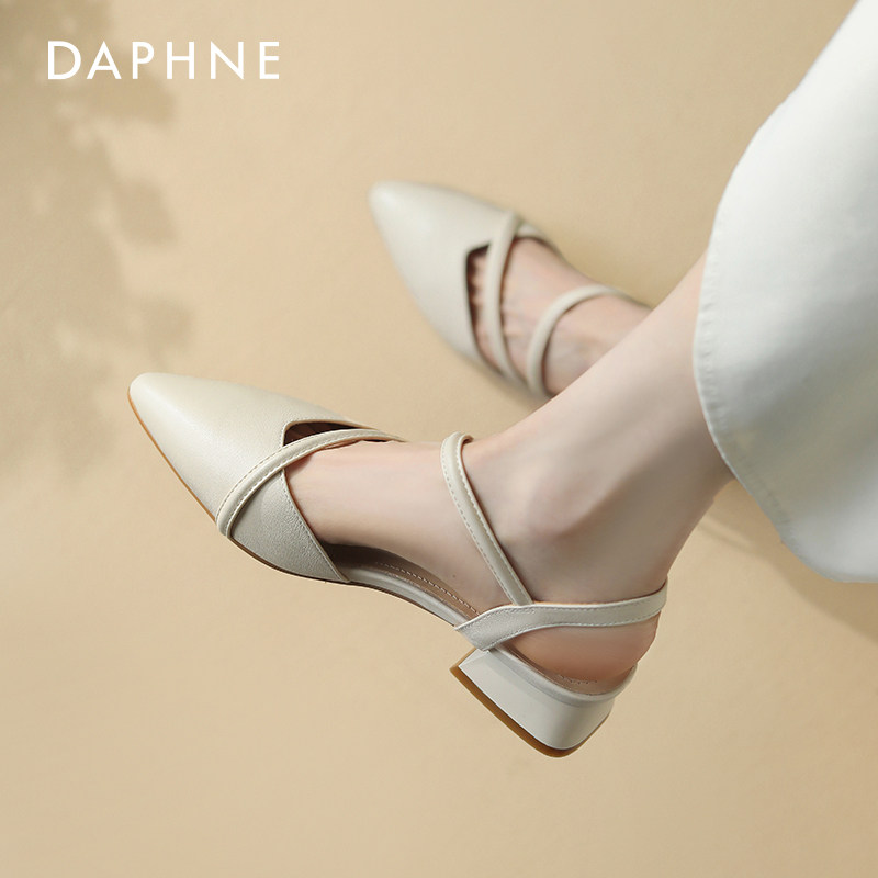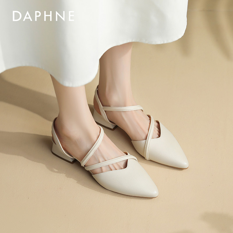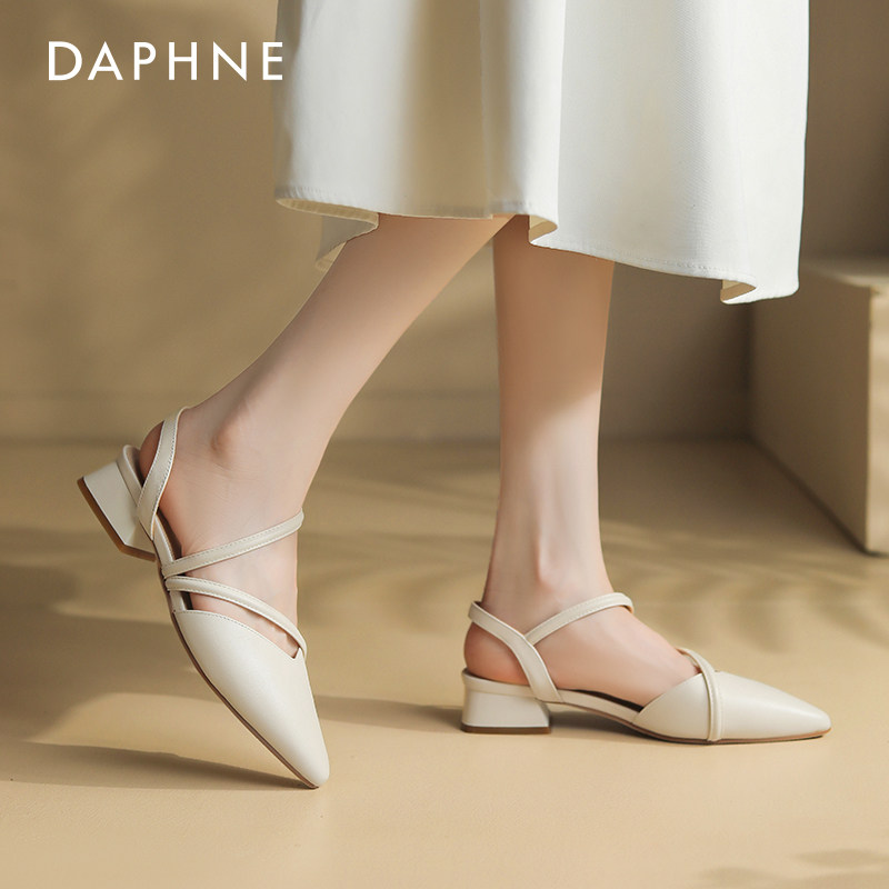 达芙妮包头凉鞋女2025新款外穿夏季外穿尖头低跟妈妈女鞋法式粗跟