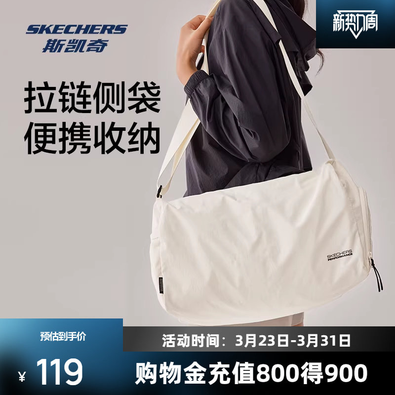 斯凯奇吐司包新品男女同款大容量斜挎包轻柔肤感运动包包