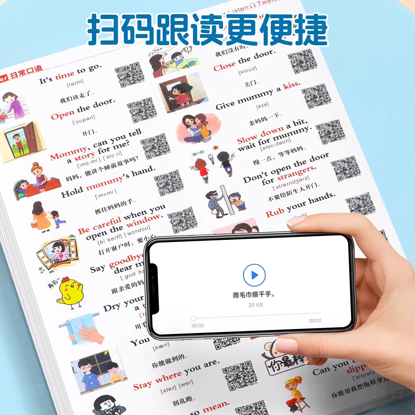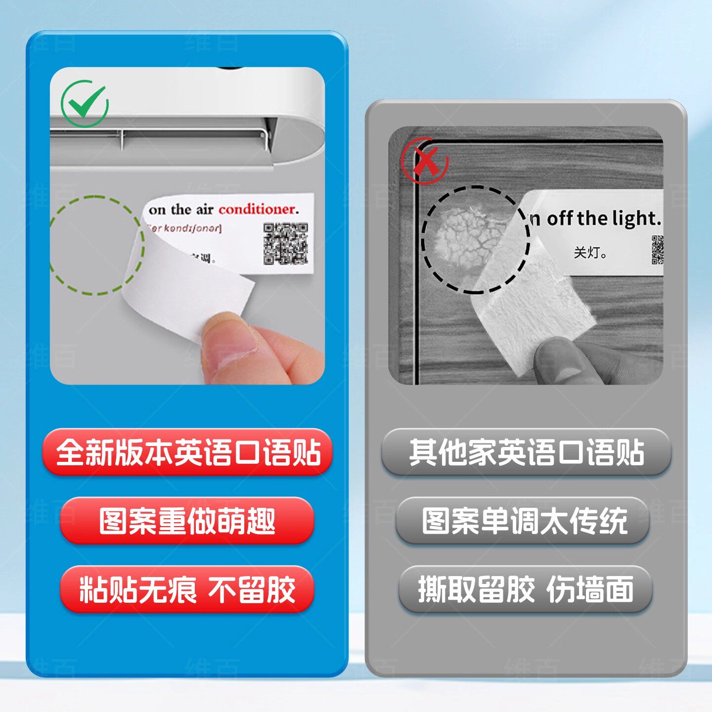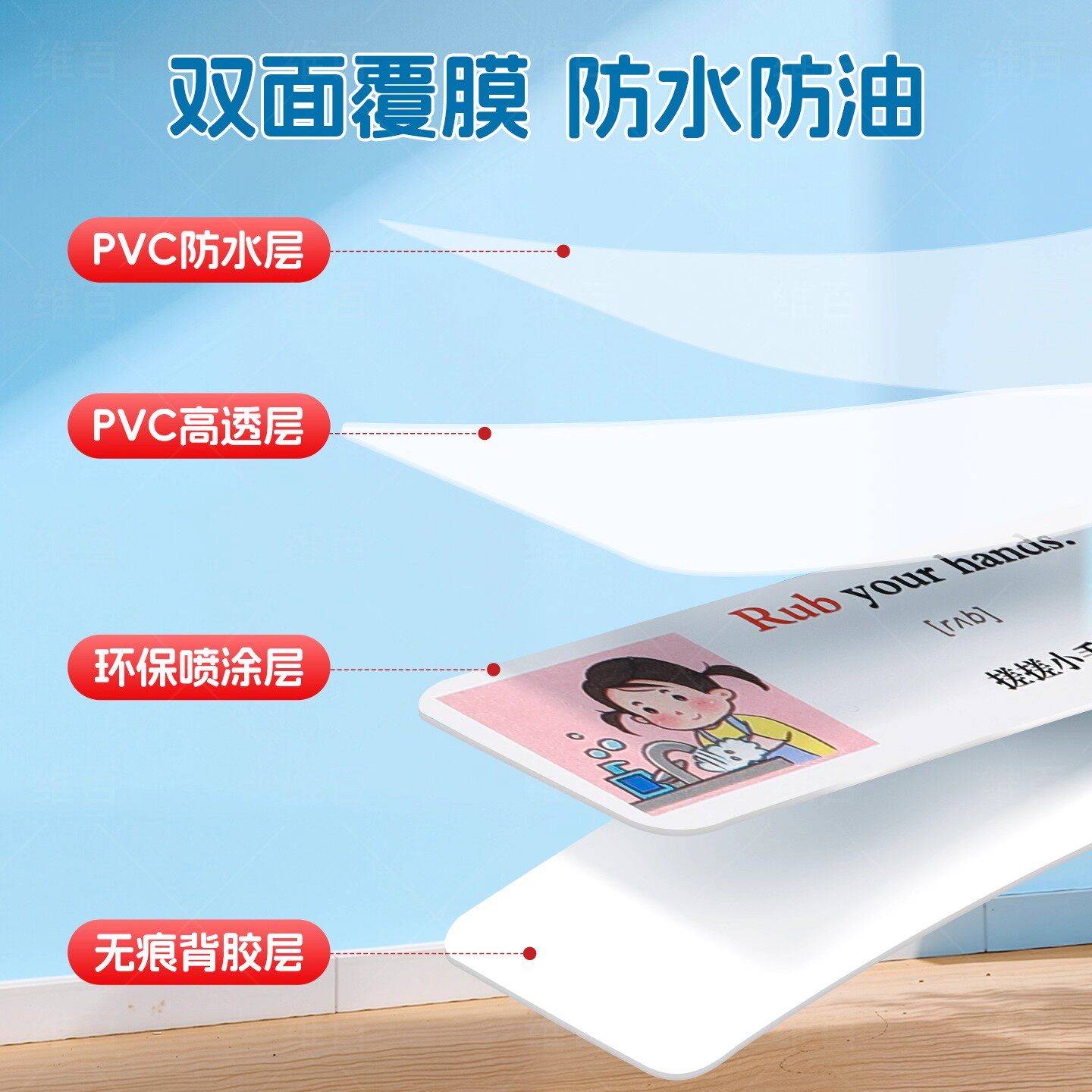 家庭情景英语口语便利贴纸日常生活便签贴纸女孩儿童学习用品标签贴英语贴纸小学生英语单词启蒙卡通贴纸防水