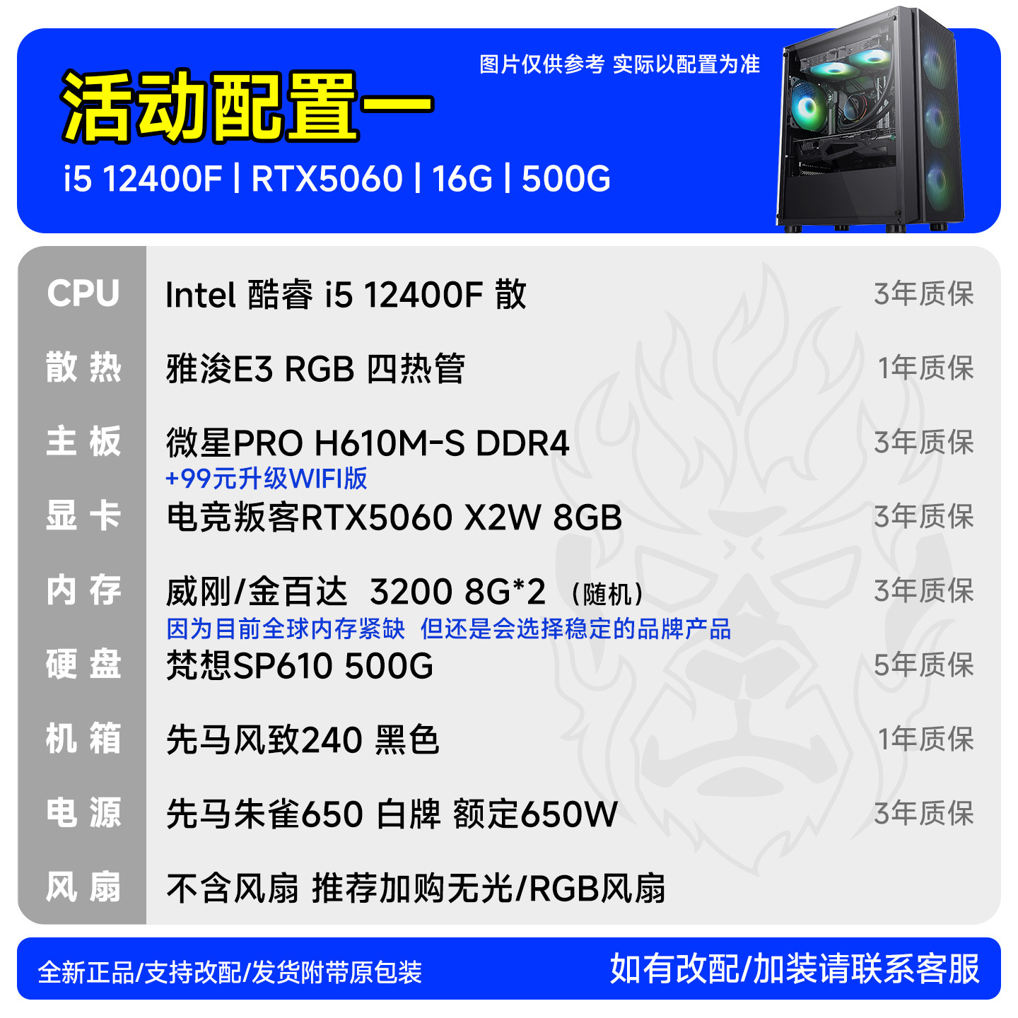 影驰微星RTX5060主机13400F/9600Xdiy台式电脑装机猿自营电竞馆