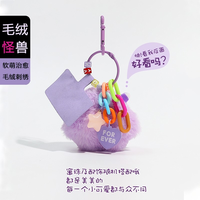 可爱小怪兽钥匙扣新款毛绒公仔挂件车钥匙扣精致书包挂饰卡通diy