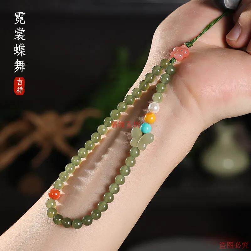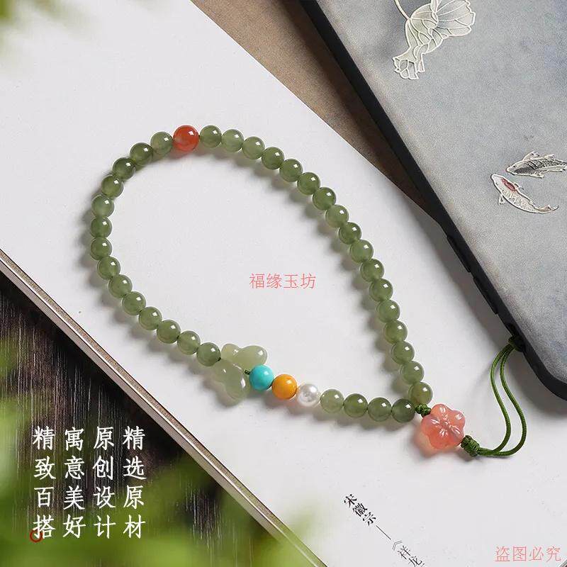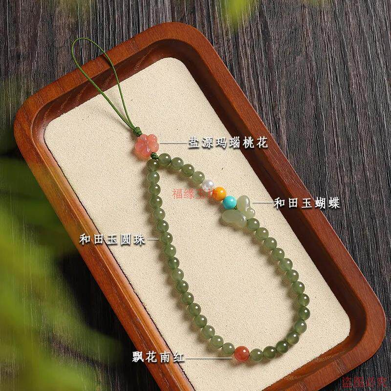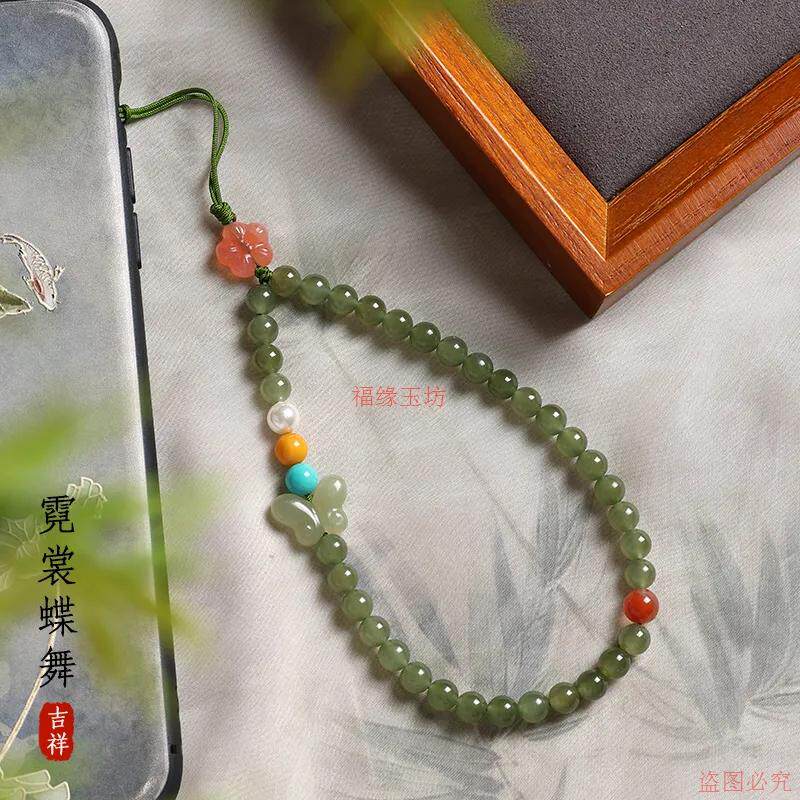 精品和田玉手机链中国风新中式手机防丢绳南红蜜蜡蝴蝶挂件手腕绳