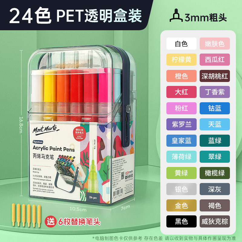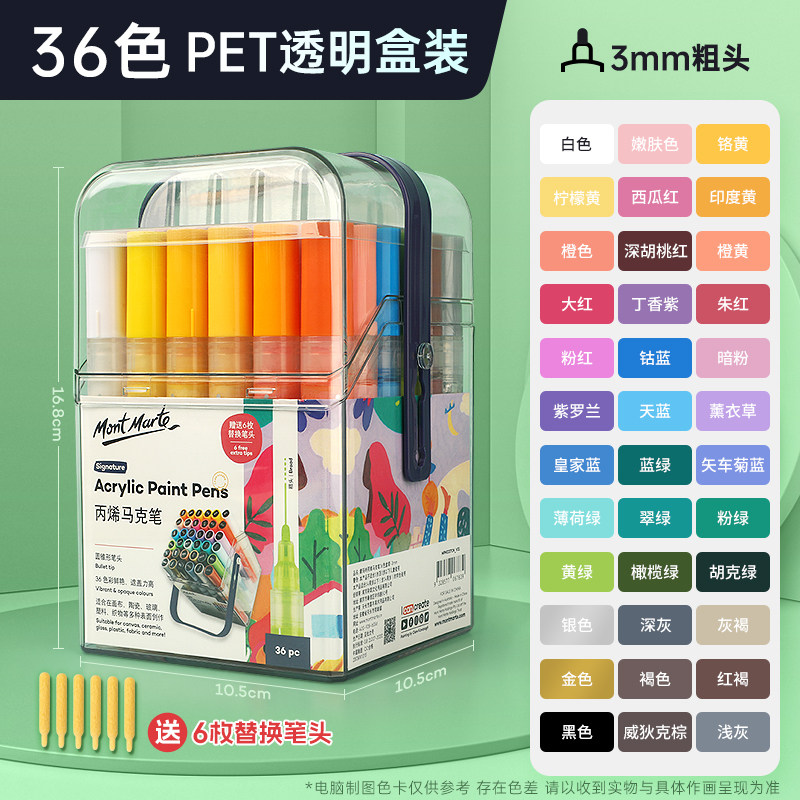 蒙玛特丙烯马克笔套装防水不透色速干高达补色DIY画鞋丙烯颜料按压式儿童水彩笔记号笔海报彩色金属高光画笔