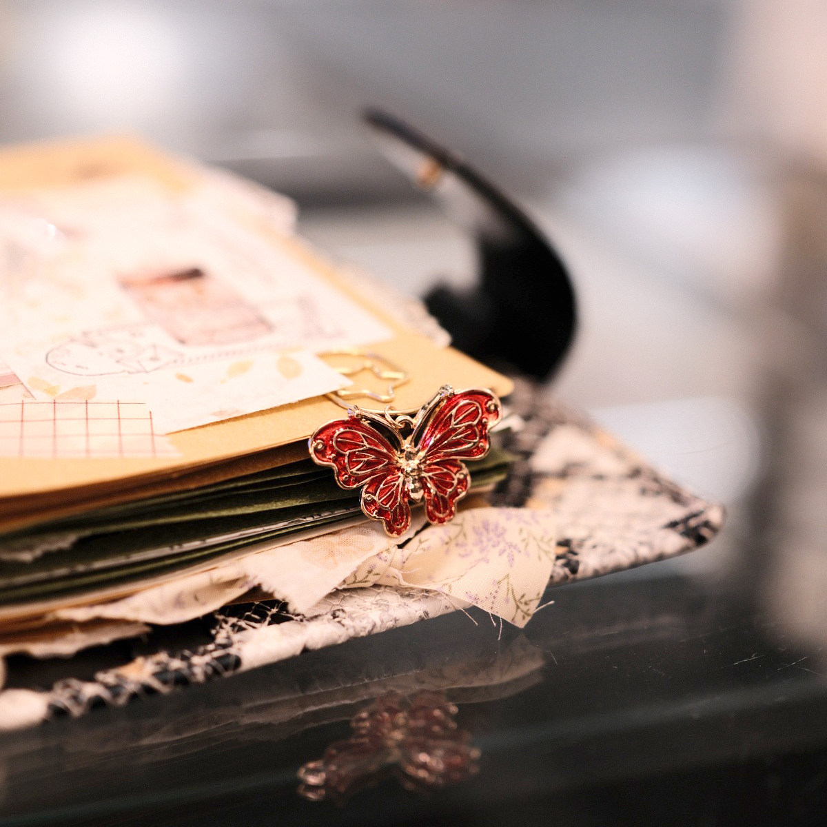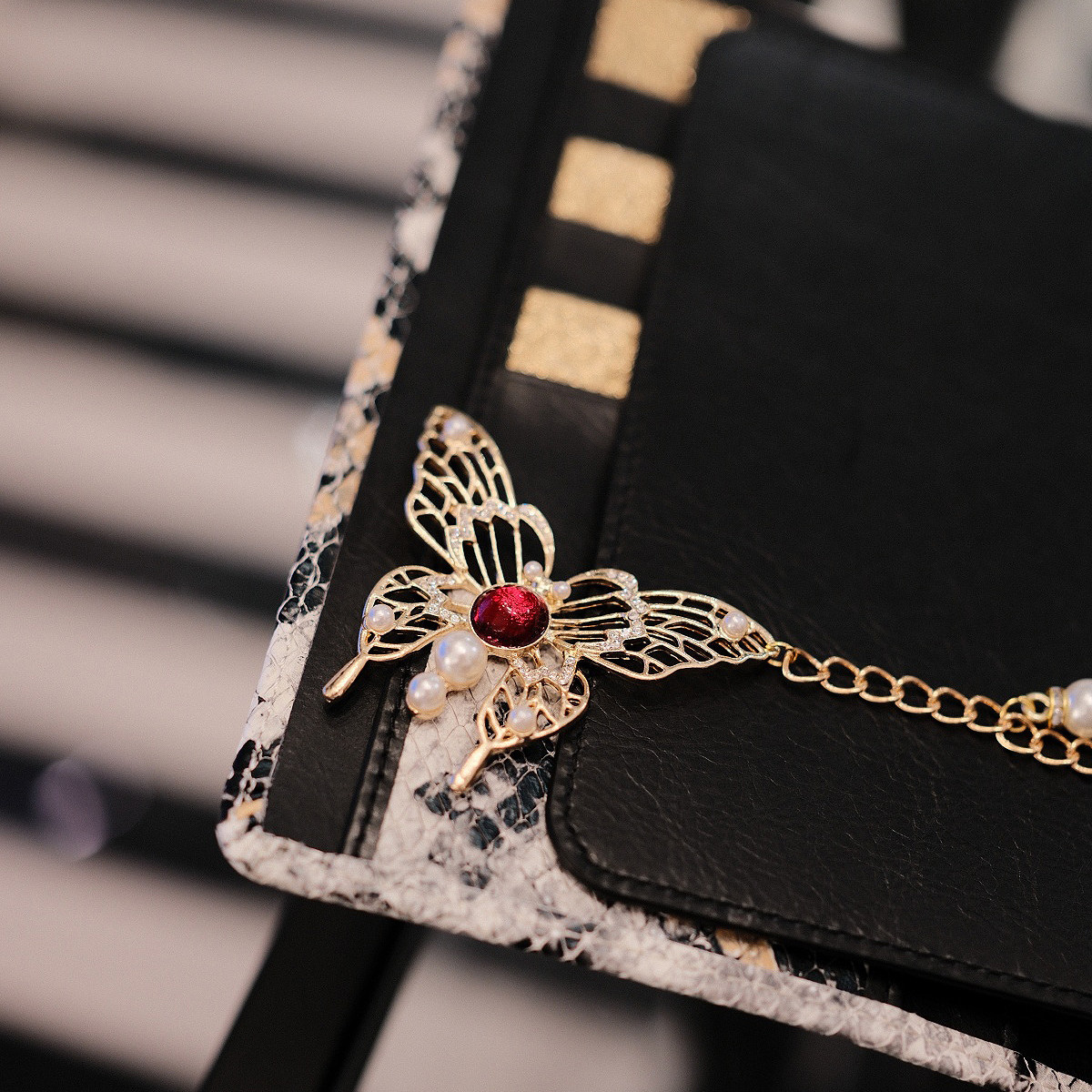 QY轻奢蝴蝶挂件别针手工手帐装饰链条书签INS风欧美风活页配件