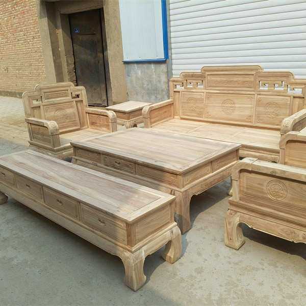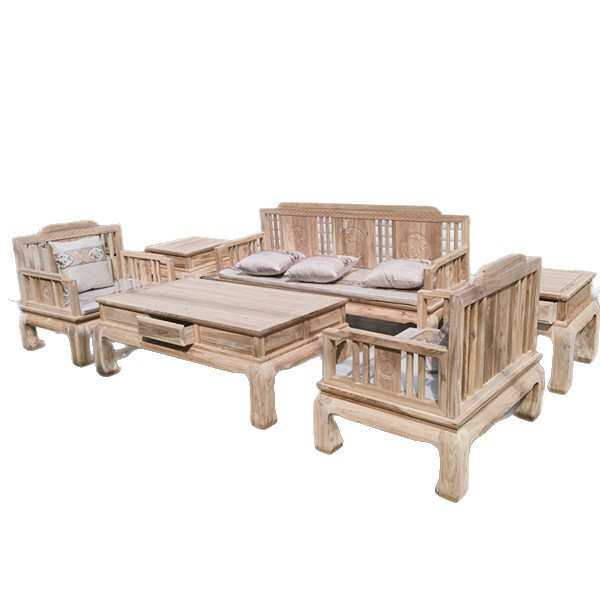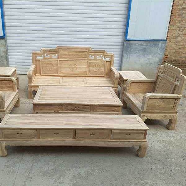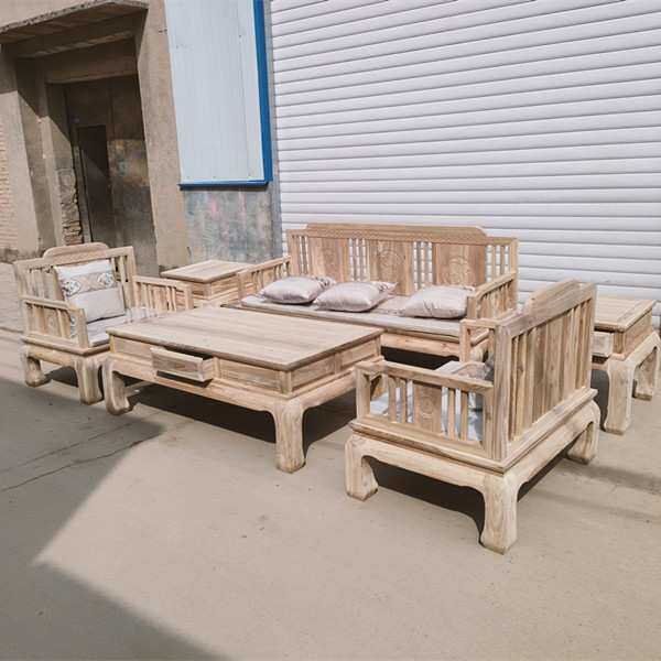 仿古实木家具沙发组合白胚坯茬禅意实木客厅 工厂北方老榆木