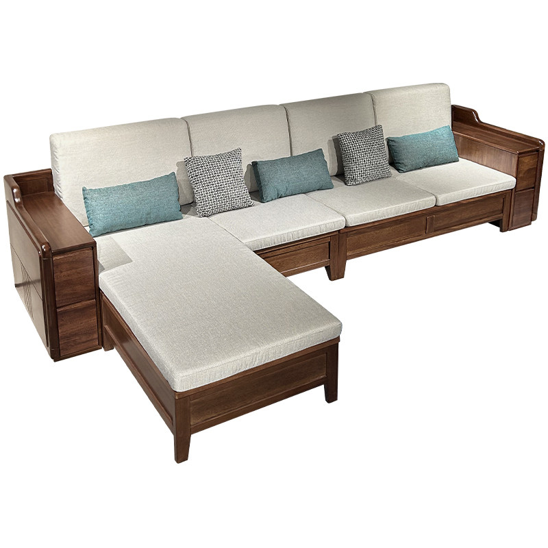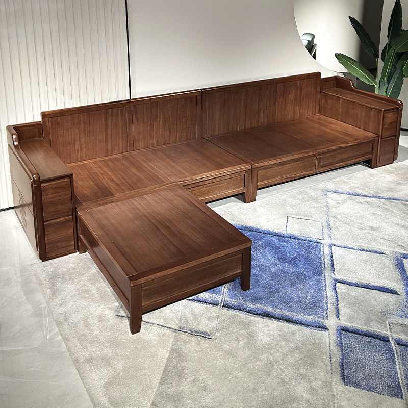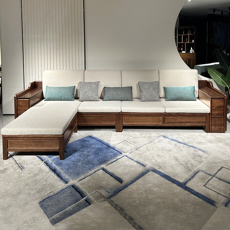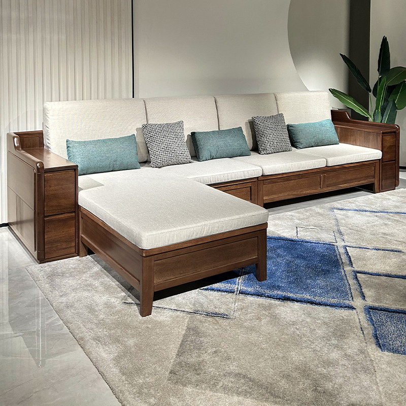 胡桃木沙发客厅家用现代简约小户型储物全实木冬夏两用转角四人位