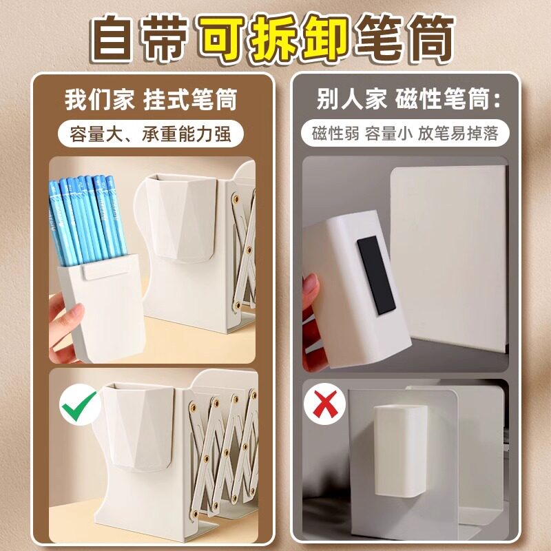 可伸缩书立带笔筒书架一体桌面书本折叠固定书本收纳架挡板书夹立架学生用桌上高中生收缩立书架创意放书神器