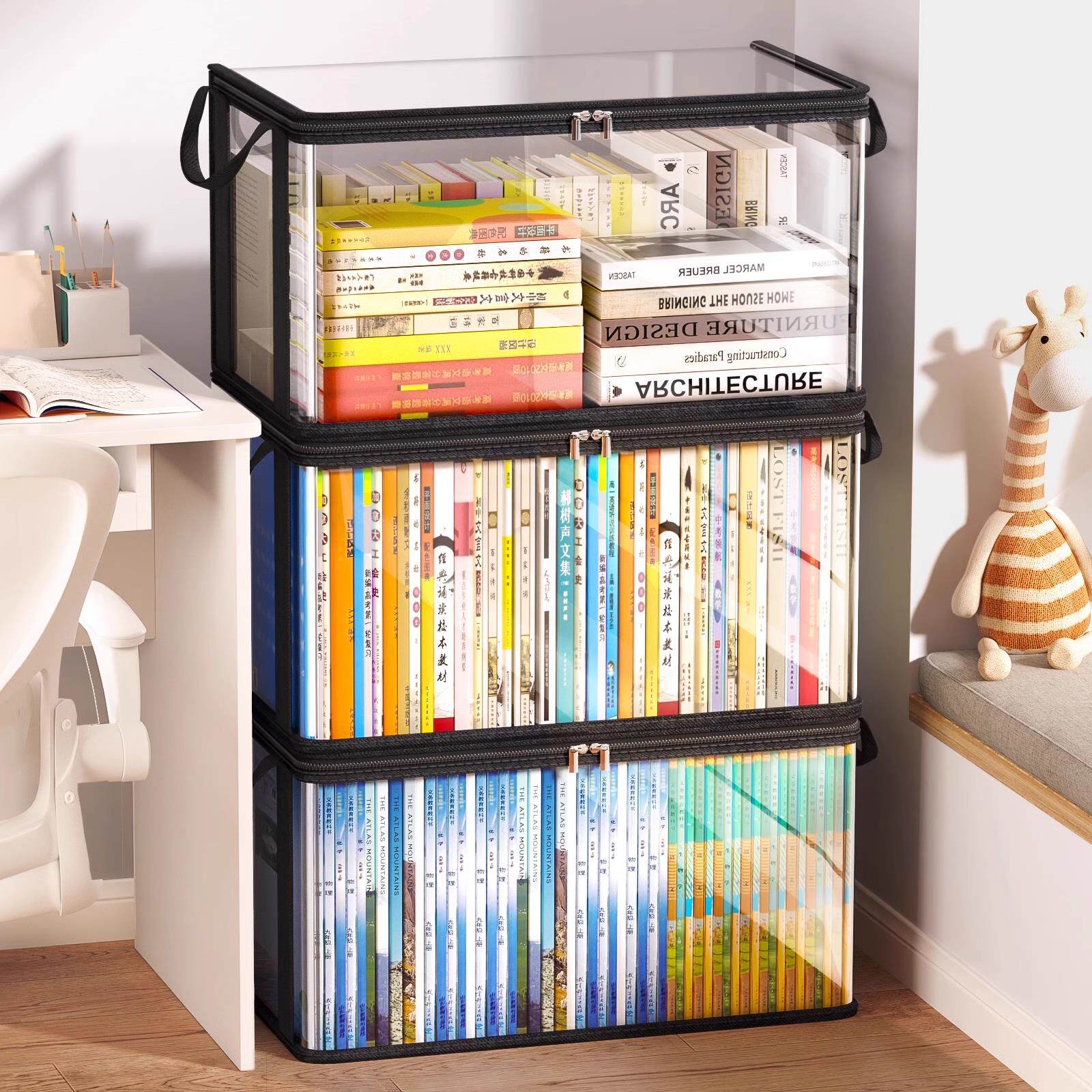 书本收纳箱防尘袋透明收纳袋高三打包防水透明书籍分类整理可折叠课桌书架置物架家用防潮大容量旧书收纳神器