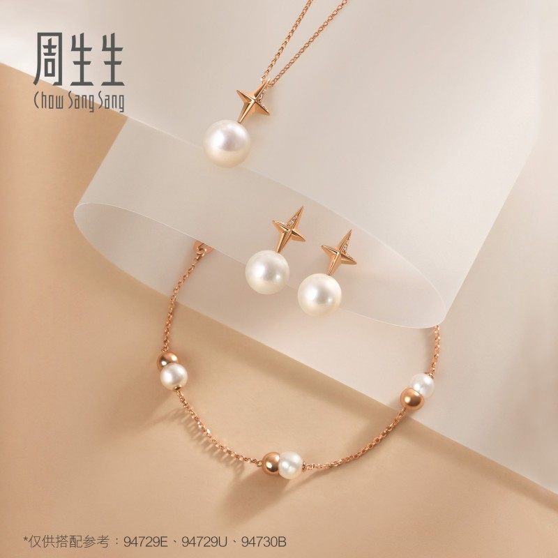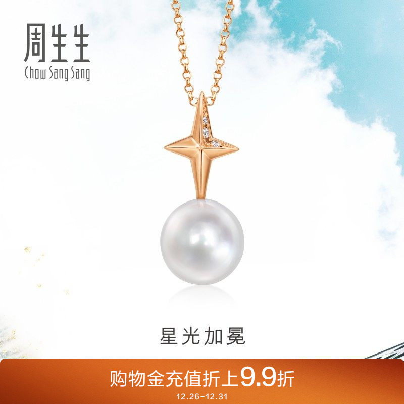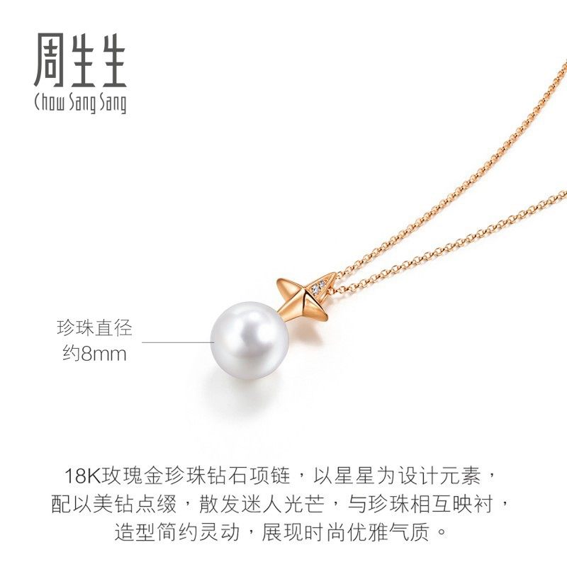 周生生Daily Luxe 18K金项链星光加冕钻石珍珠套链94729U