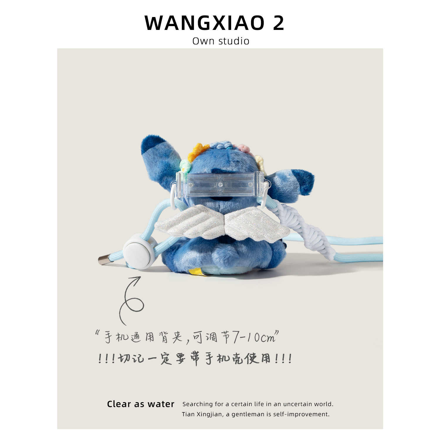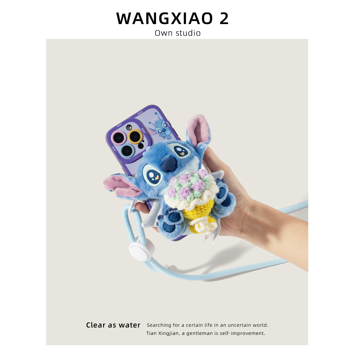 WANGXIAO 2正版手捧花天使史迪奇手机链背夹斜跨史迪仔挂件挂饰品