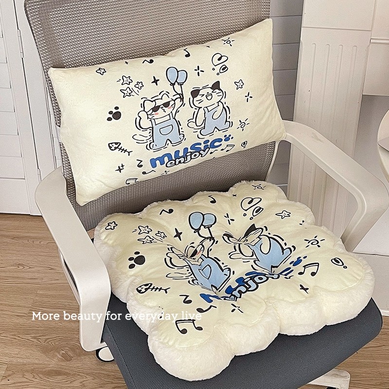 倚澳白兔毛绒坐垫可爱猫形加厚卡通坐椅垫仿毛柔软黑色宠物垫防滑