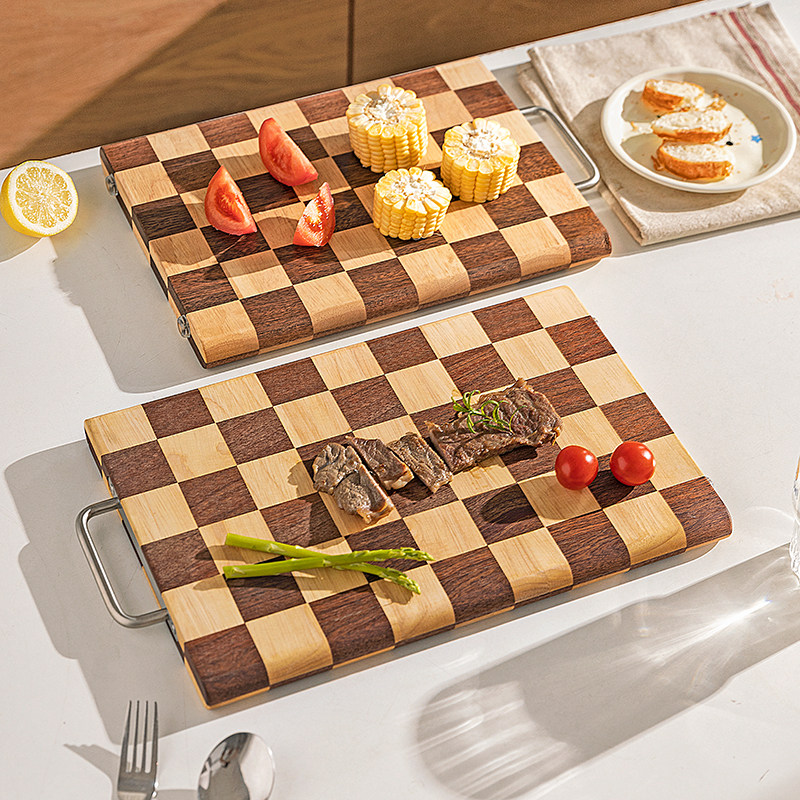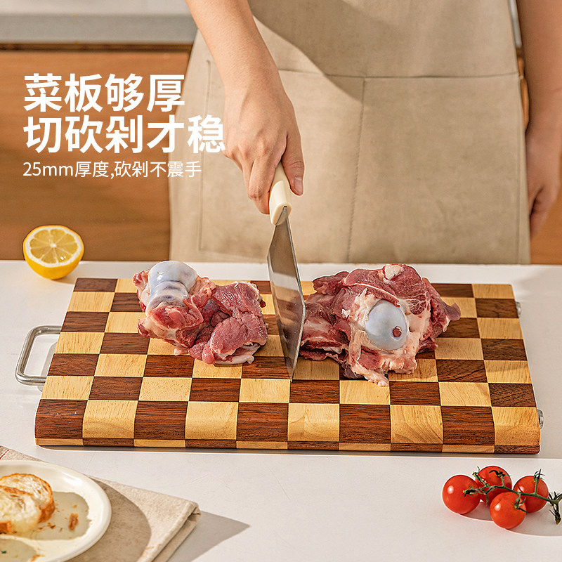 摩登主妇棋盘格菜板乌檀木抗菌防霉实木切菜案板厨房家用水果砧板