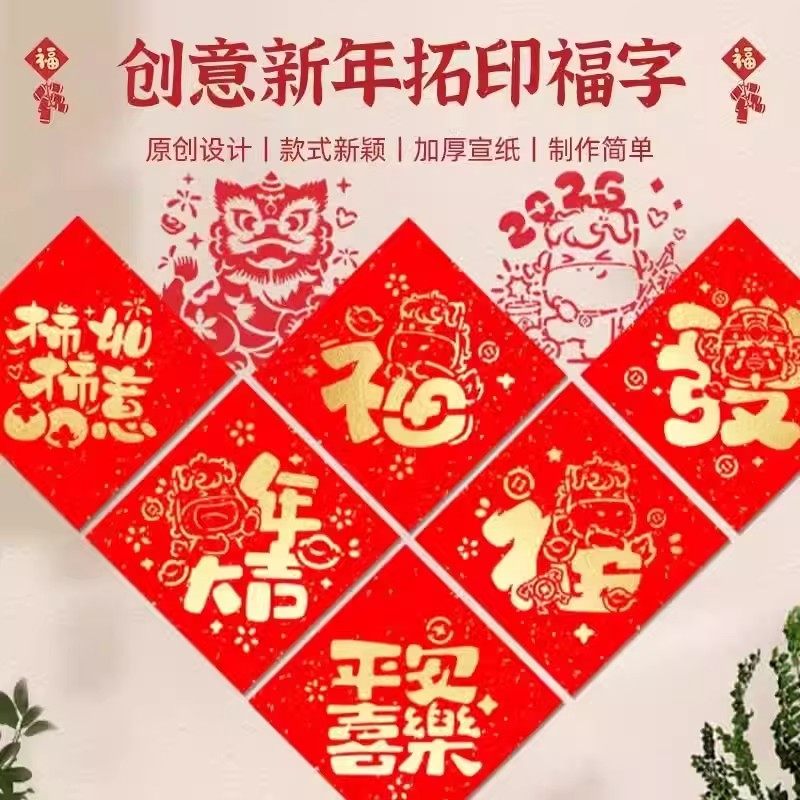 2026马年新款福字拓印画材料包全套幼儿园儿童学生手工diy拓印画春节新年镂空福字大号涂鸦拓印模板工具套装
