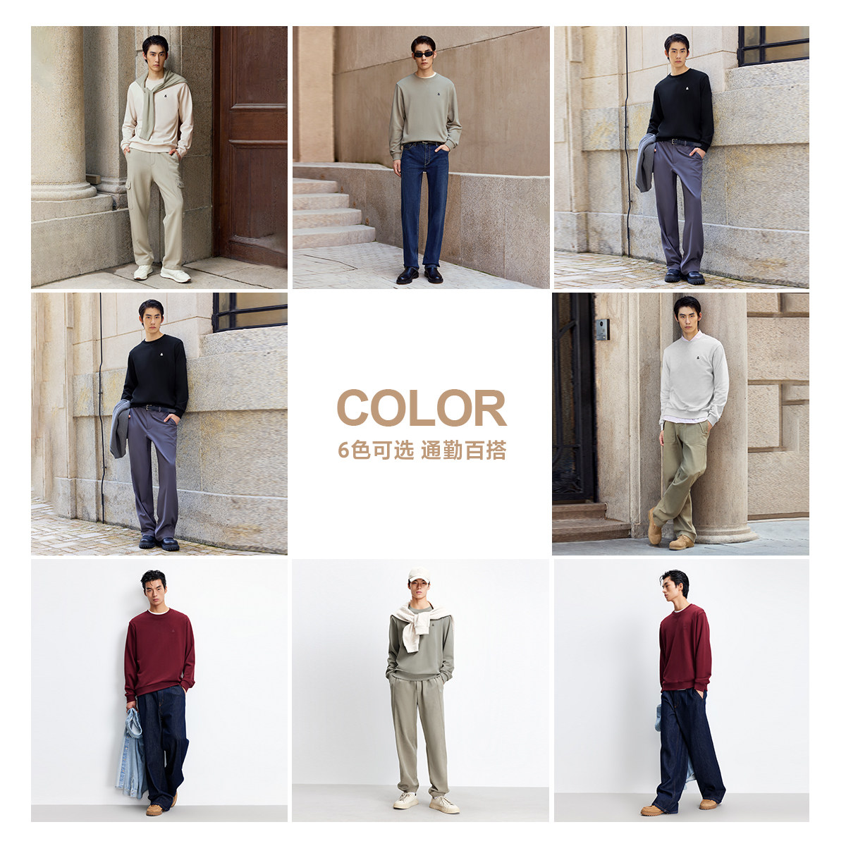 鸭鸭绵羊毛奥粒绒圆领卫衣2025年秋季新款男士简约百搭套头上衣Y