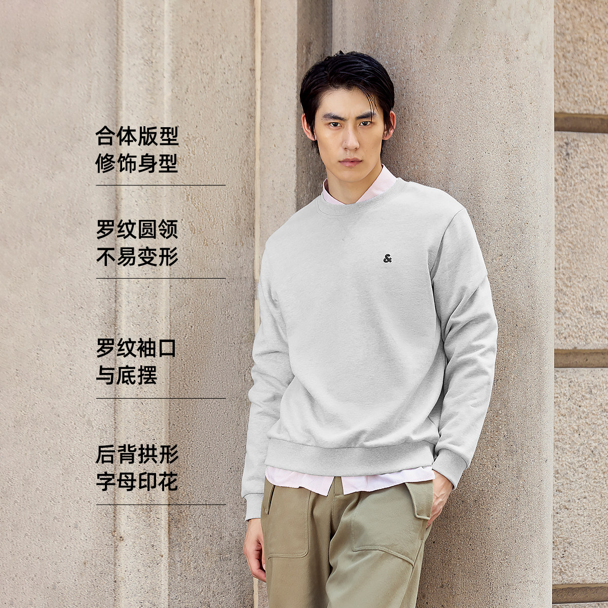 杰克琼斯奥特莱斯男装秋季卫衣圆领胸前刺绣字母胶印日常长袖上衣