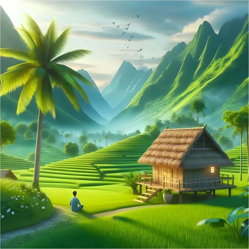超美田园风景图海报客厅卧室走廊过道高清装饰自粘贴画贴纸防水