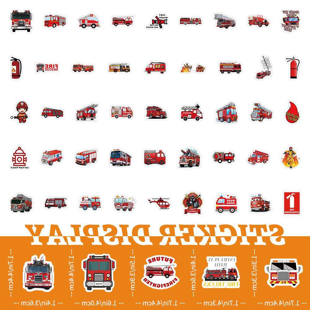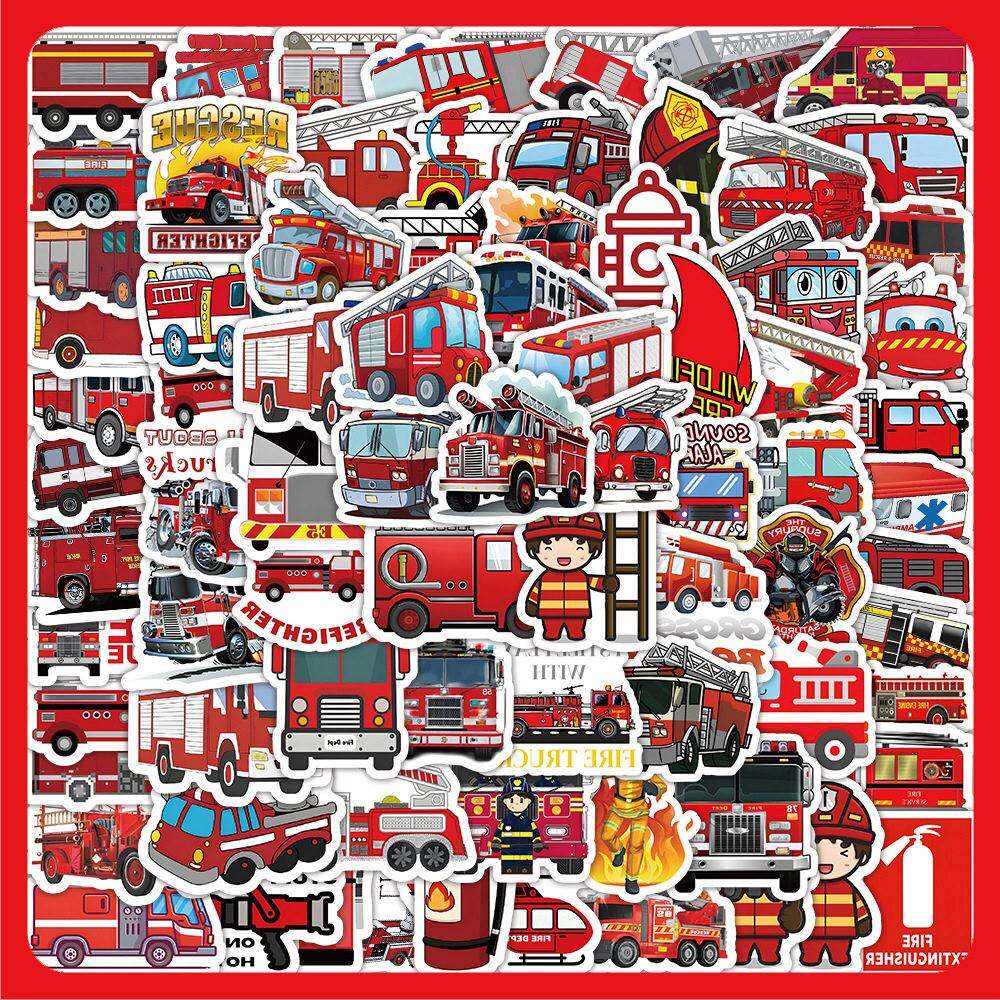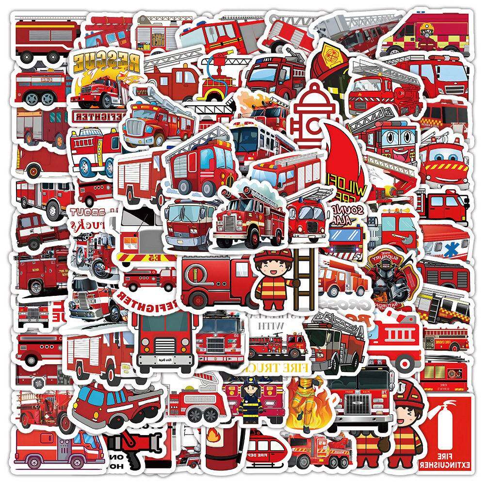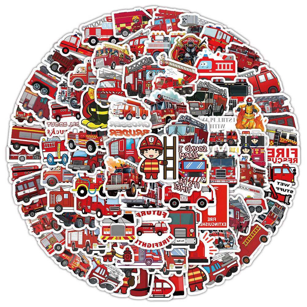 100卡通消防车防水贴纸在风创意装饰笔记本文具手册贴纸