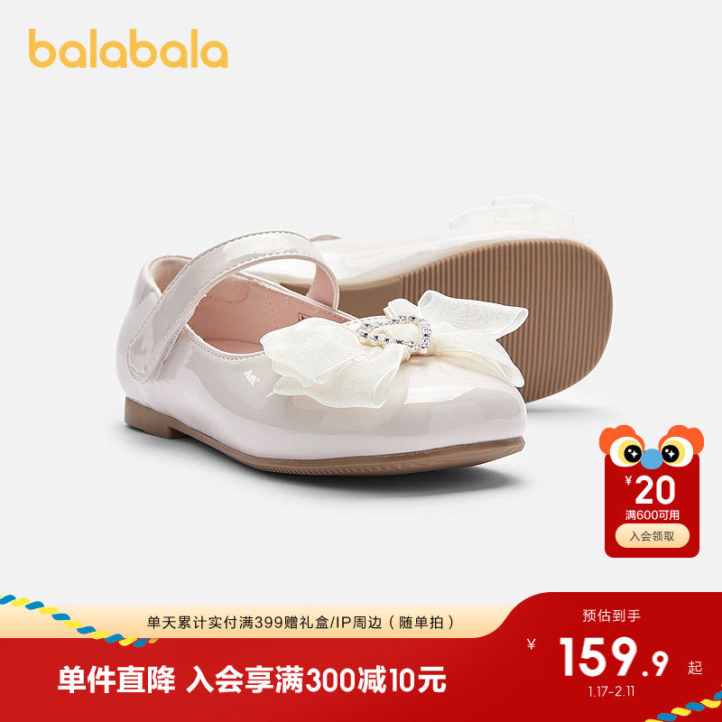 巴拉巴拉童鞋儿童公主鞋蝴蝶结女童凉鞋2025秋季新款潮防滑小皮鞋