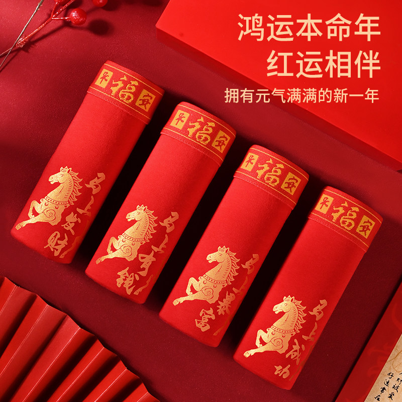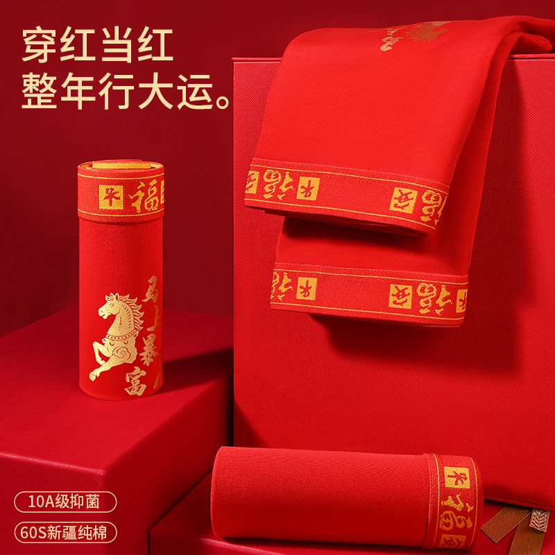 雅鹿本命年男士内裤纯棉抗菌四角男生红色2026属马的专用结婚礼物