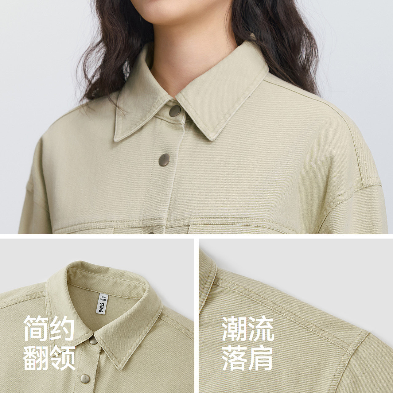 森柔|森马牛仔衬衫女春中长款oversize落肩长袖衣服格纹街头衬衣