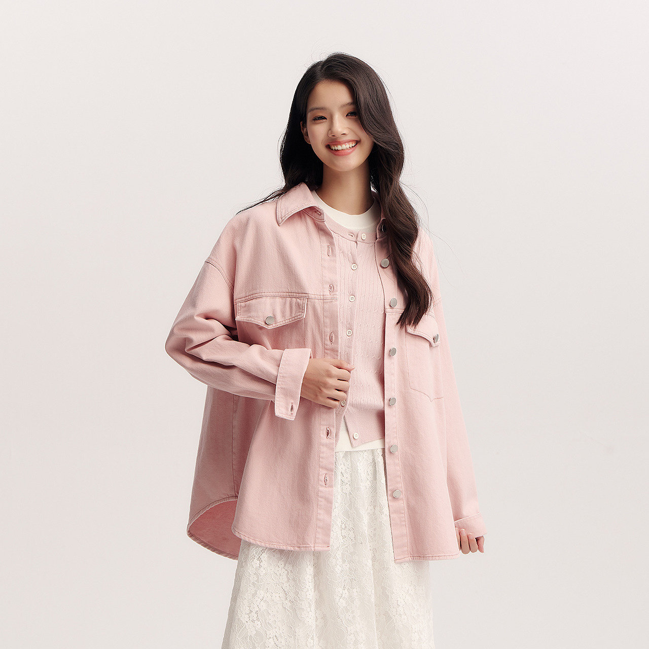 森马长袖衬衫女春季中长款落肩oversize磨毛复古简约盐系慵懒衬衣