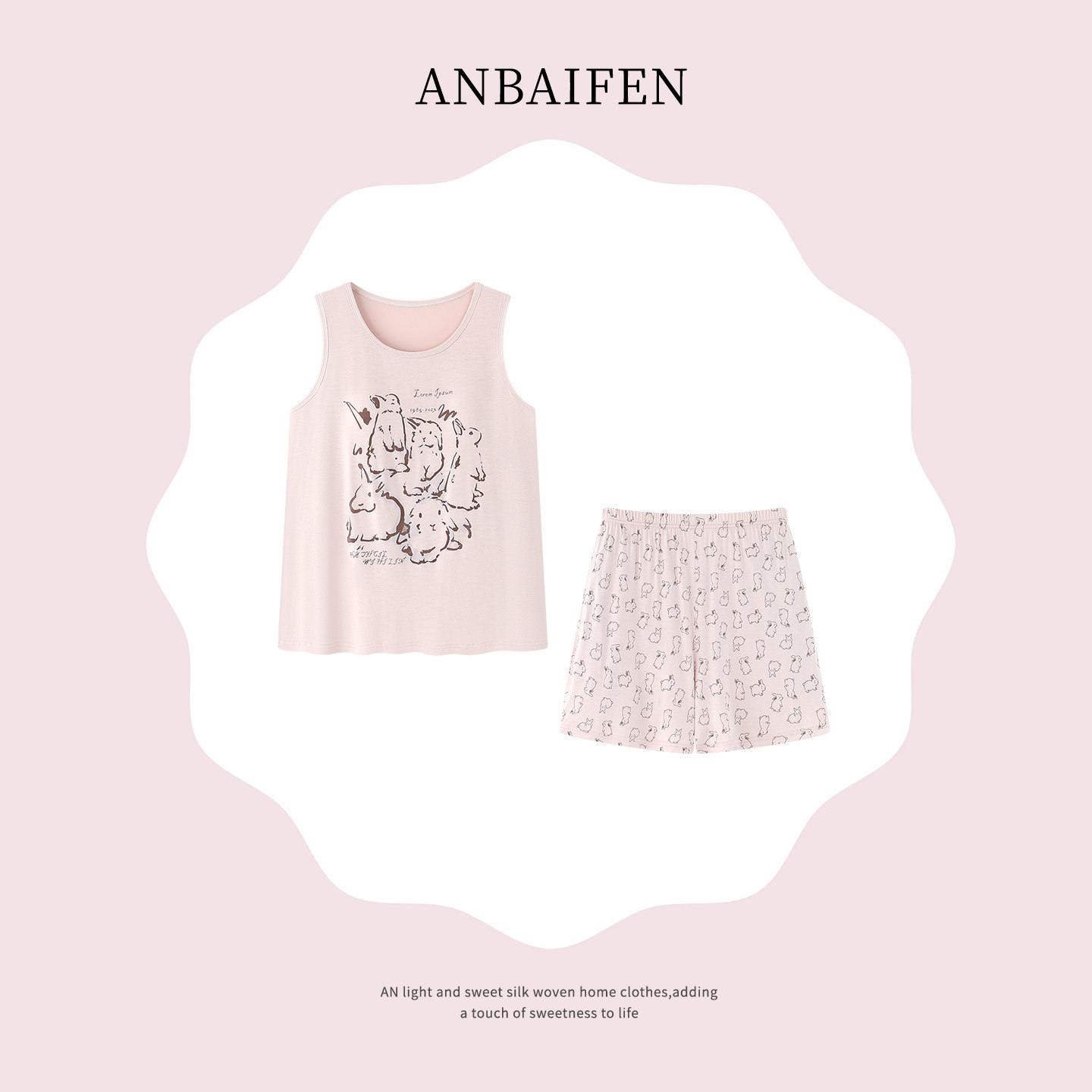末里末【带胸垫】夏季凉感无袖背心甜美风可外穿睡衣女家居服套装