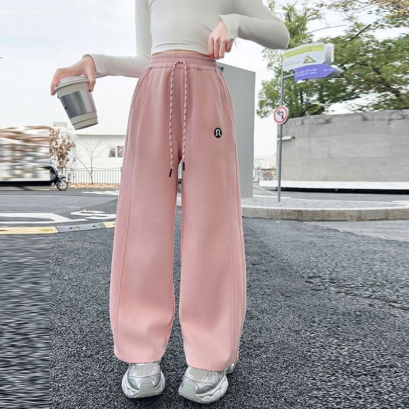 女童加绒裤子秋冬2025新款儿童冬季阔腿裤中大童运动直筒长裤流行