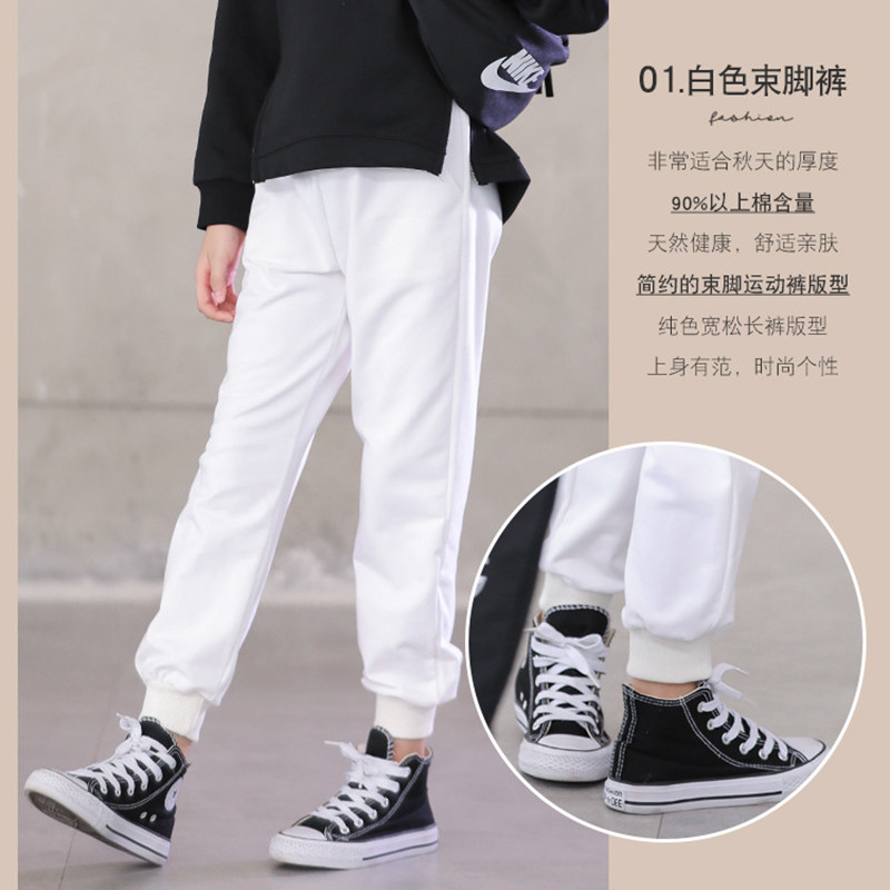 春夏男女童白色校服裤中小学生纯棉运动长裤