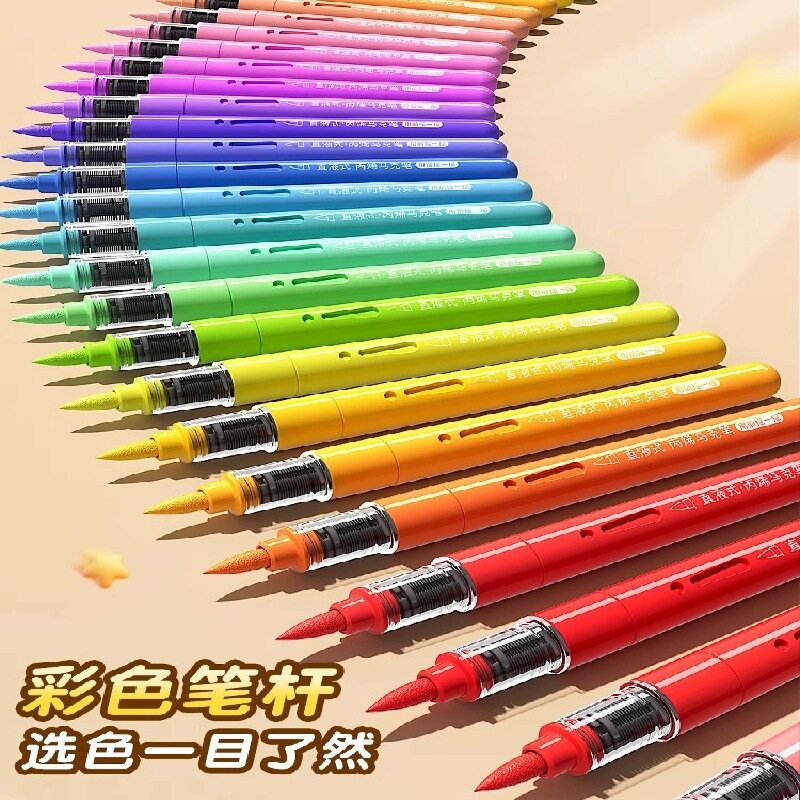 直液式小学生可叠色水彩笔美术生专用彩色笔儿童软头丙烯马克笔