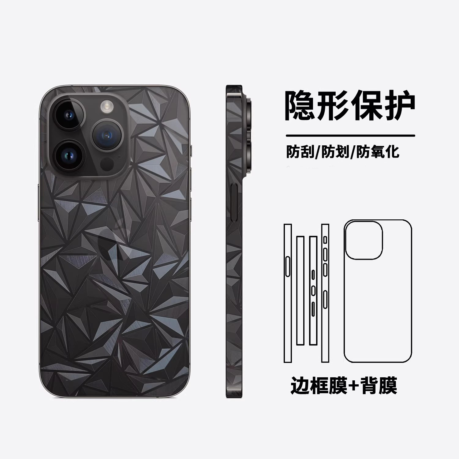 适用苹果17promax镭射背膜16promax超薄侧边镜头全包15手机贴膜14散热改色彩膜贴纸iphone13炫彩防刮手机后膜