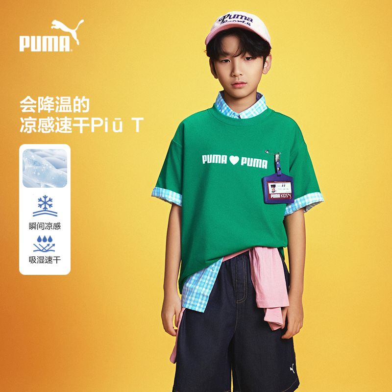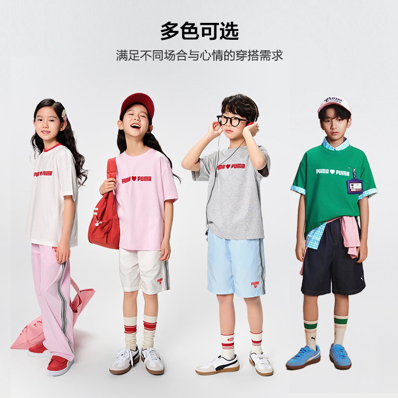 PUMA彪马男女爱心舒弹儿童夏季百搭短袖亲肤舒适吸湿速干凉爽T恤
