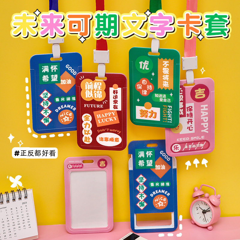 创意励志文字滑盖卡套学生公交饭卡保护套高颜值校园卡工作证胸牌