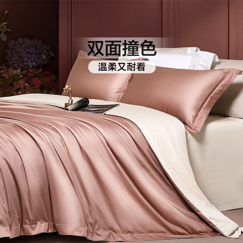 60支简约纯色被套单件纯棉100全棉单人150x200x230双人被罩四件套
