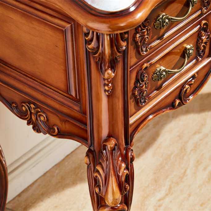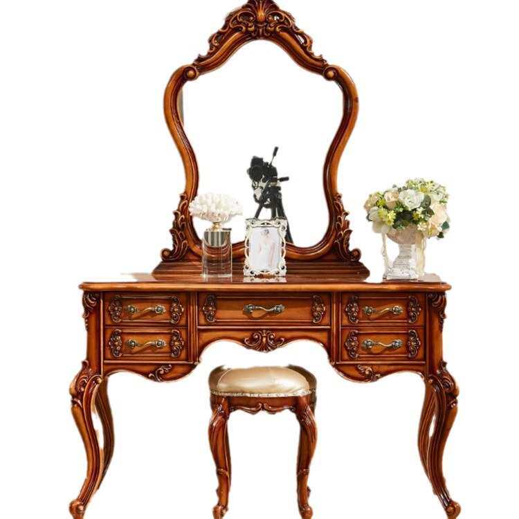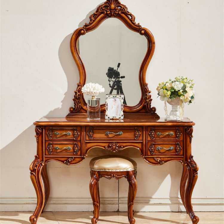 欧式全实木梳妆台 雕花卧室家具化妆镜妆凳套装花梨色高档简约