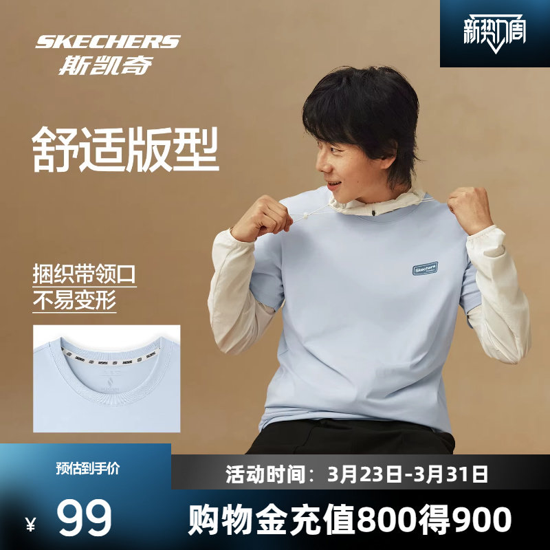 斯凯奇男女T恤短袖新款透气纯色速干白色柔软舒适体恤运动衣