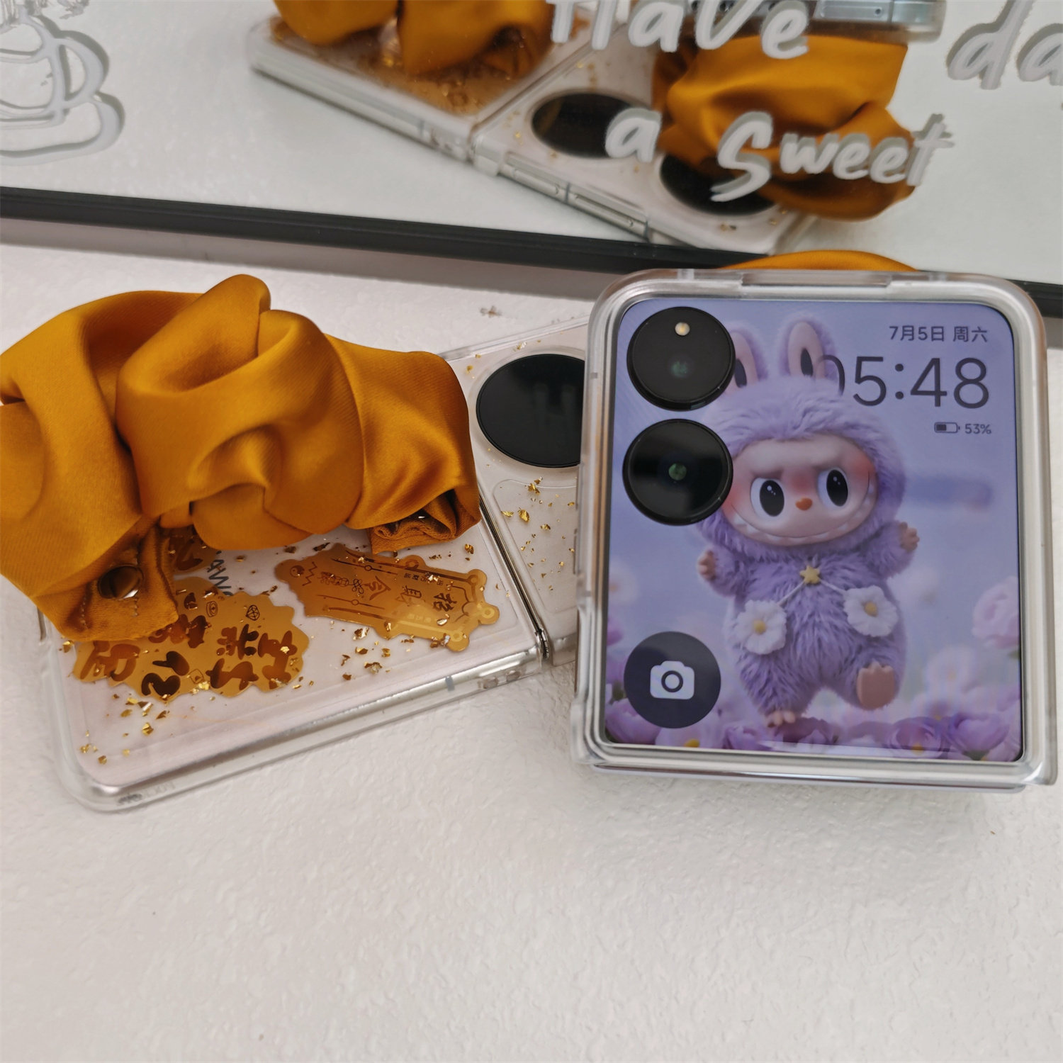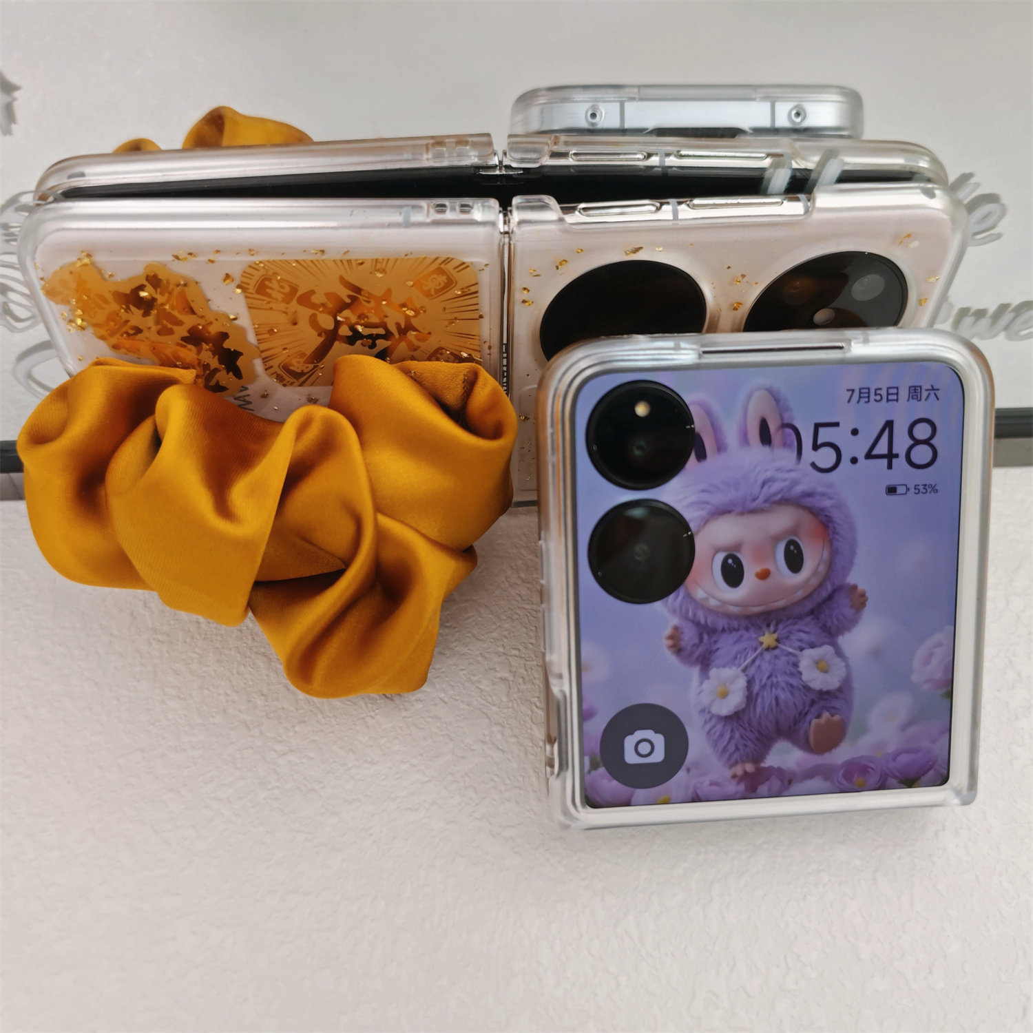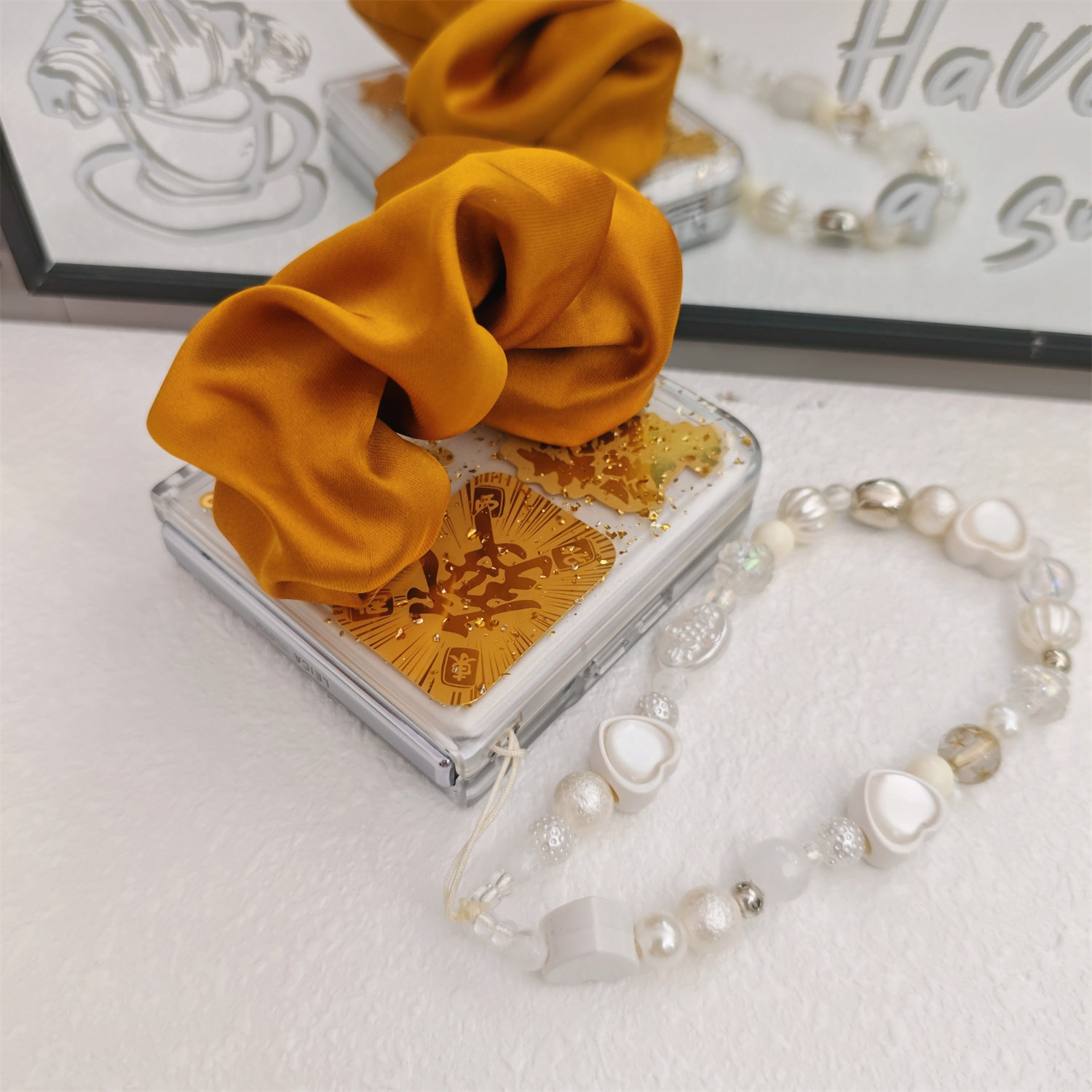 透明金箔丝巾腕带适用小米mixflip2手机壳pocket2华为purax荣耀magicvflip折叠屏三星zflip5/6挂绳全包来发财