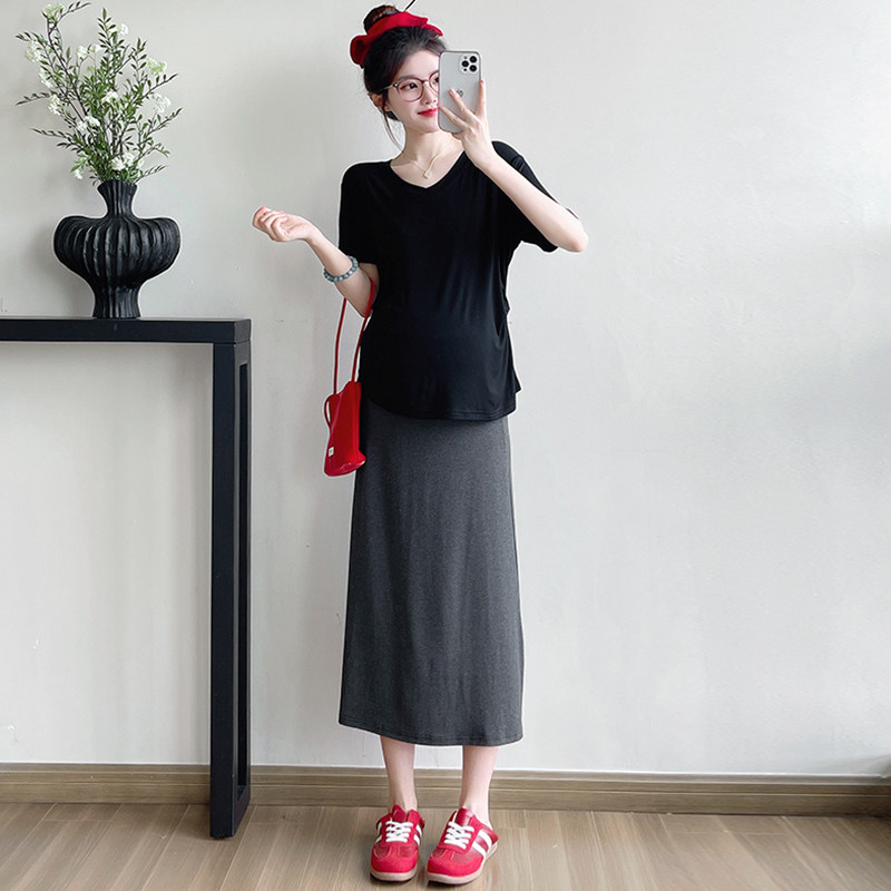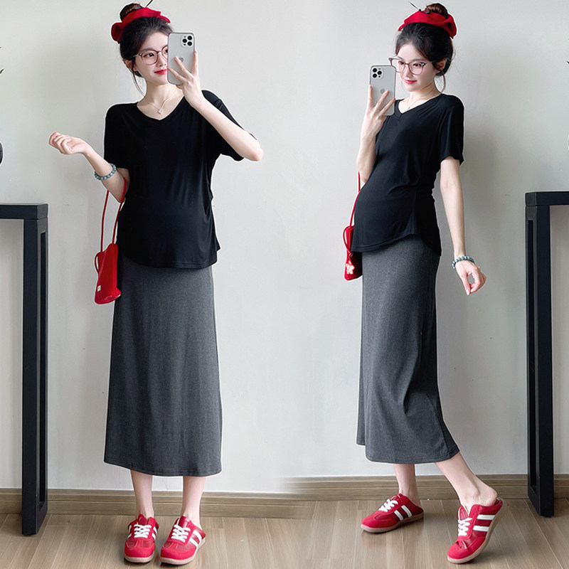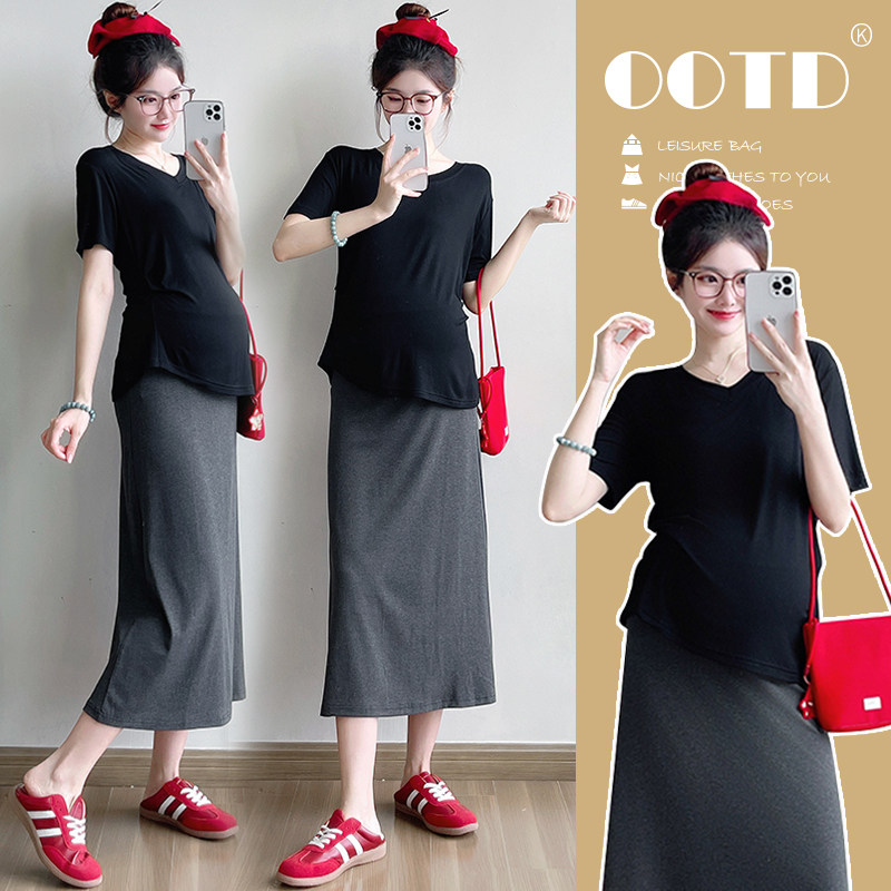 婧麒孕妇套装2025春夏新款时尚休闲百搭显瘦半身裙两件套