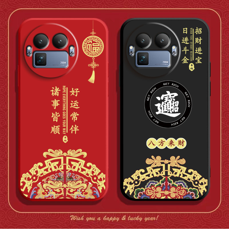 八方来财适用Realme真我GT8手机壳新年RealmeGT8Pro保护套RMX5200液态硅胶OPPOG全包防摔Por中国风OPPO后外壳