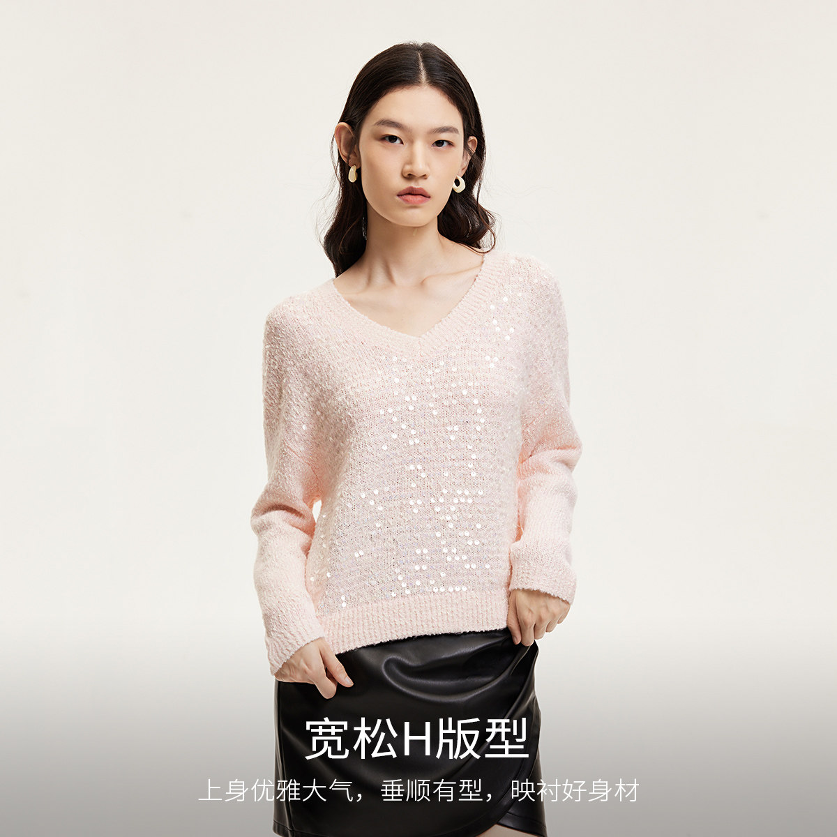 Vero Moda针织衫女秋冬宽松H版垂顺亮片V领甜美时尚324413075